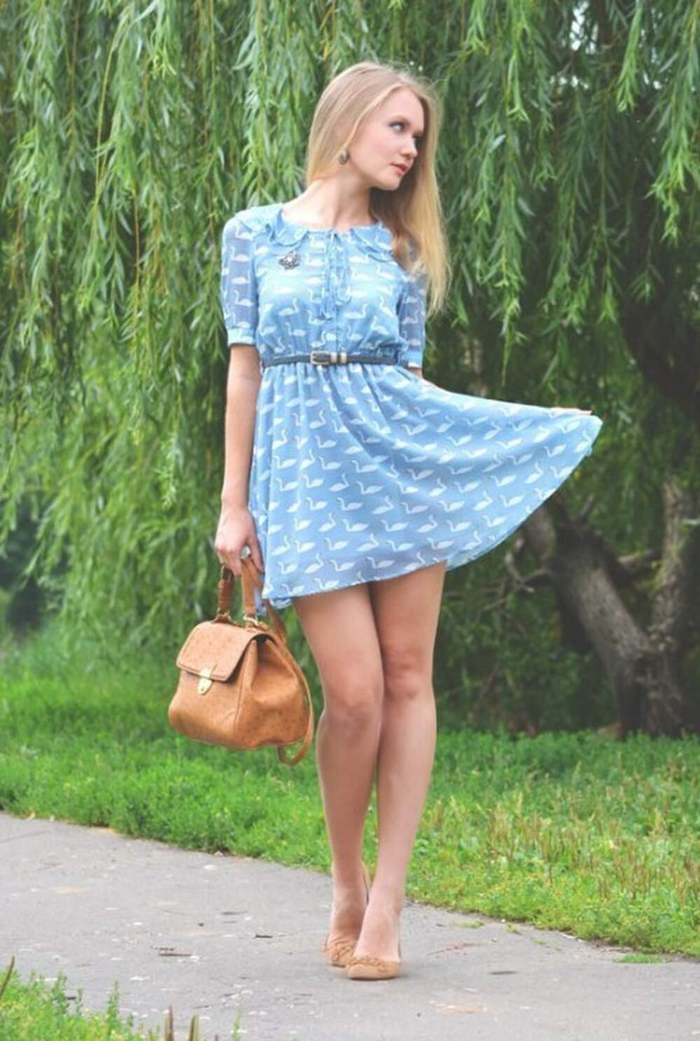 Девушка в голубом коротком платье