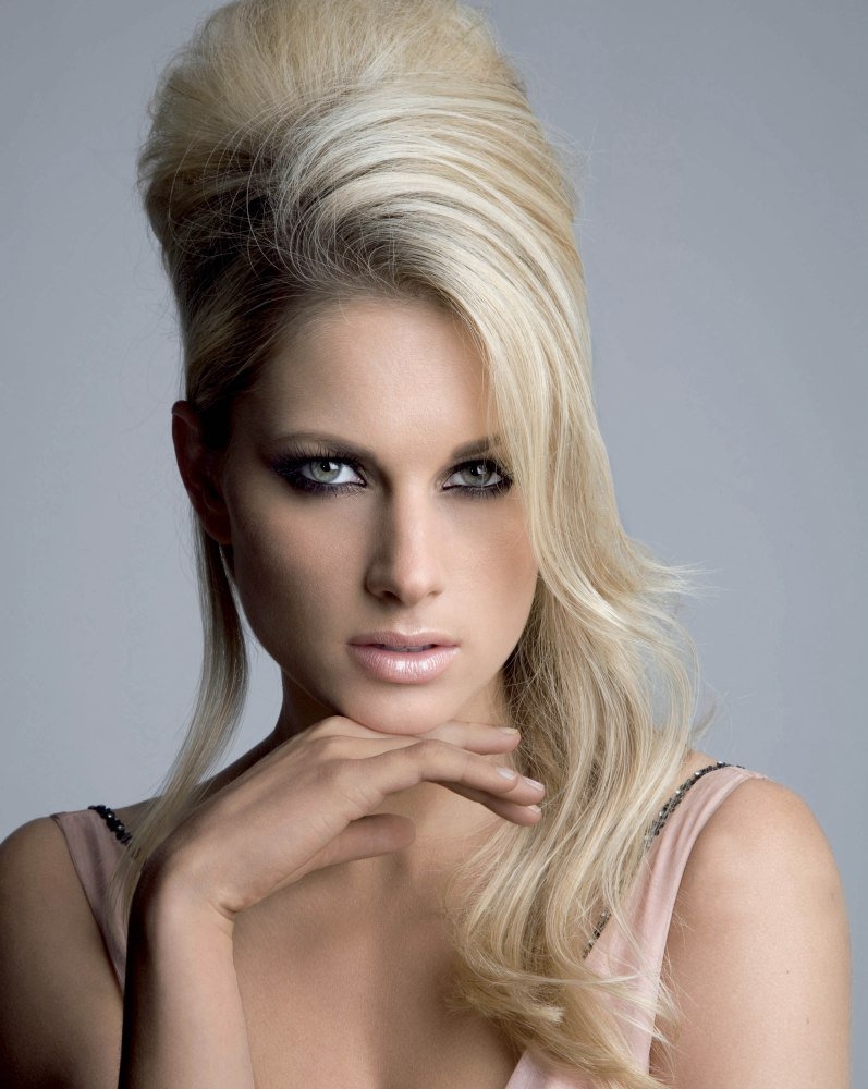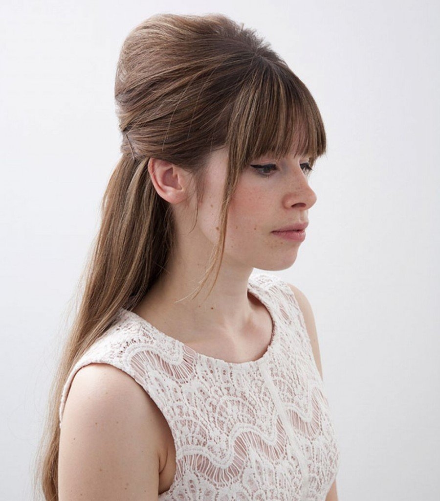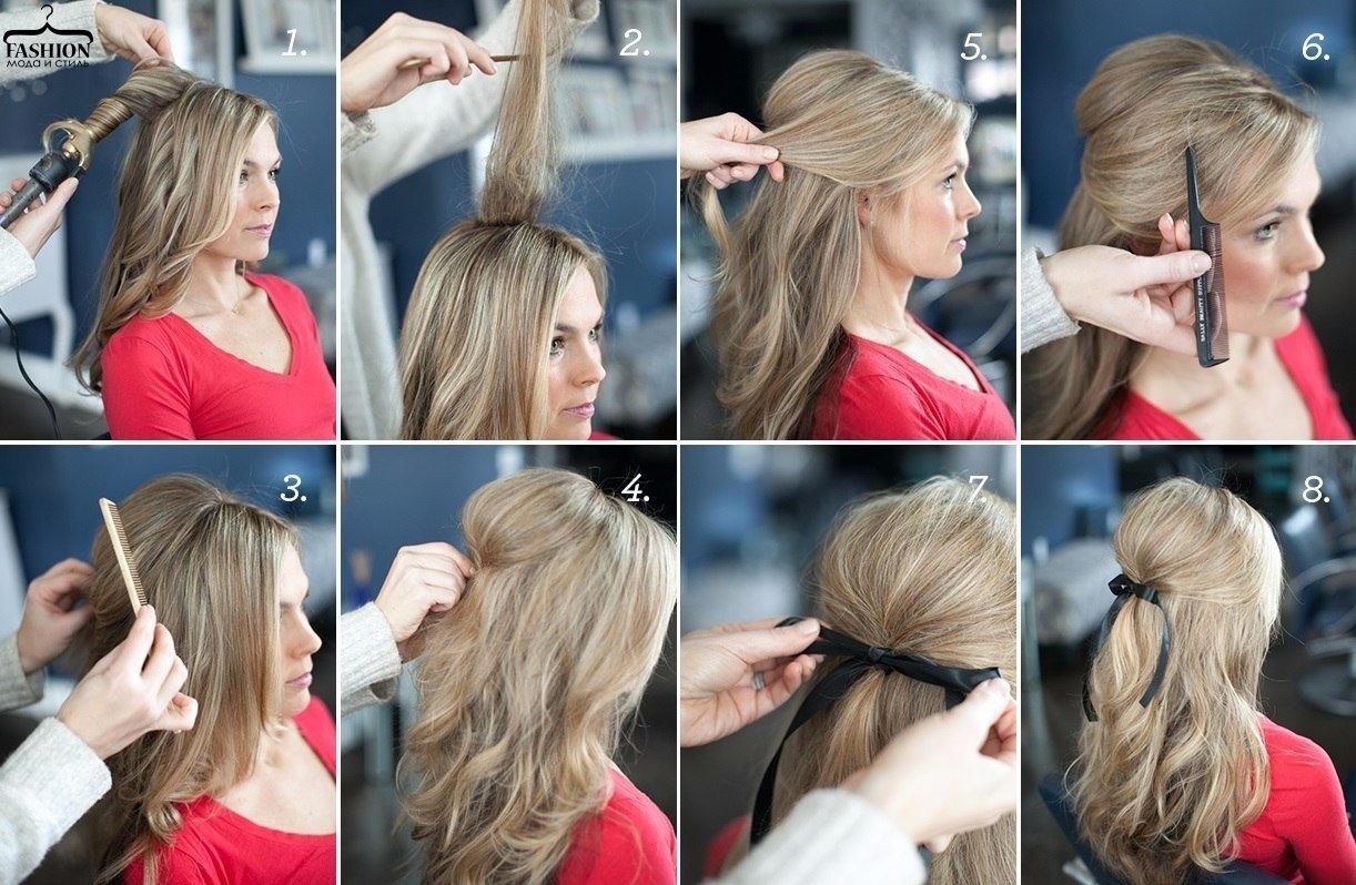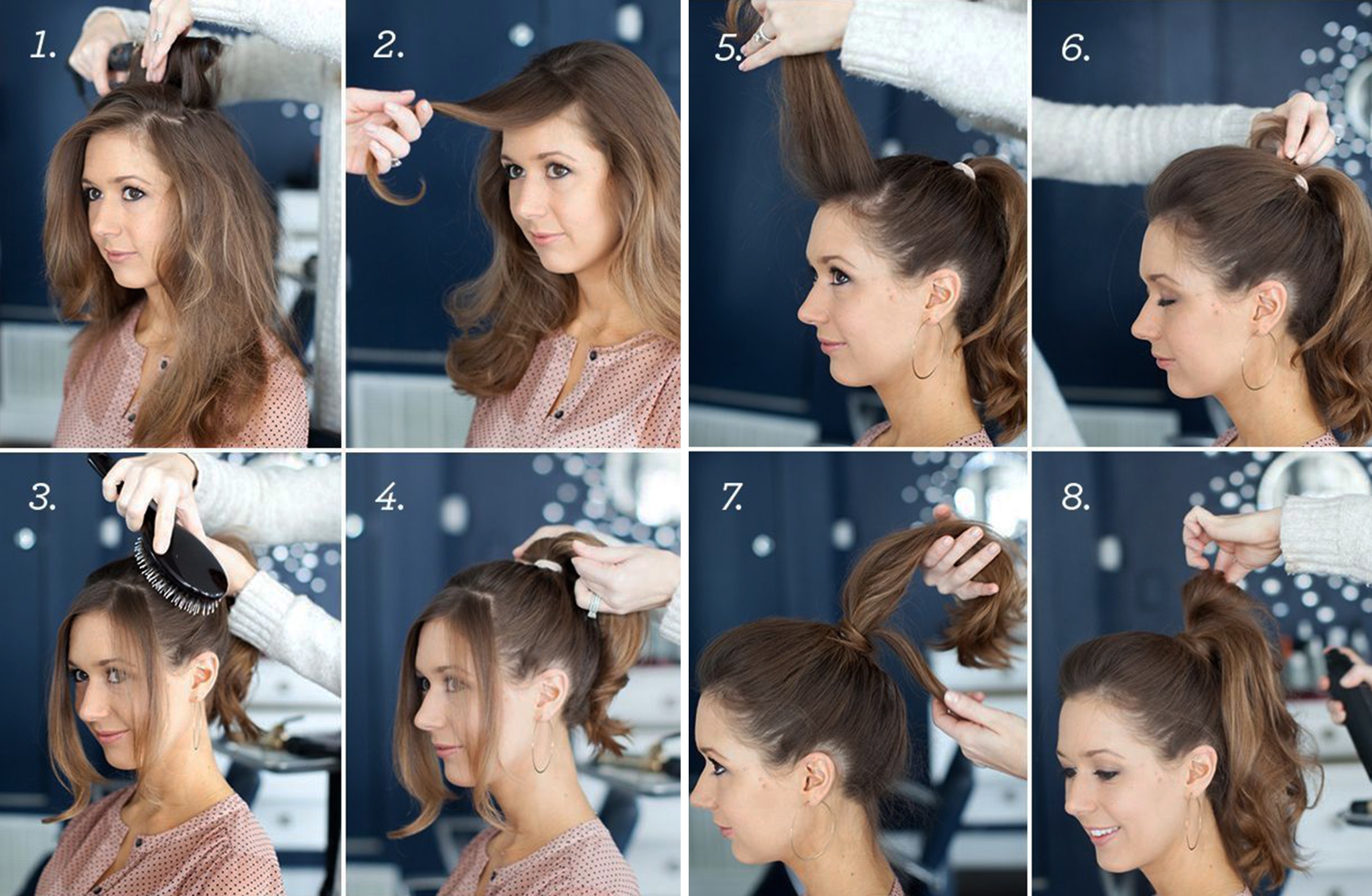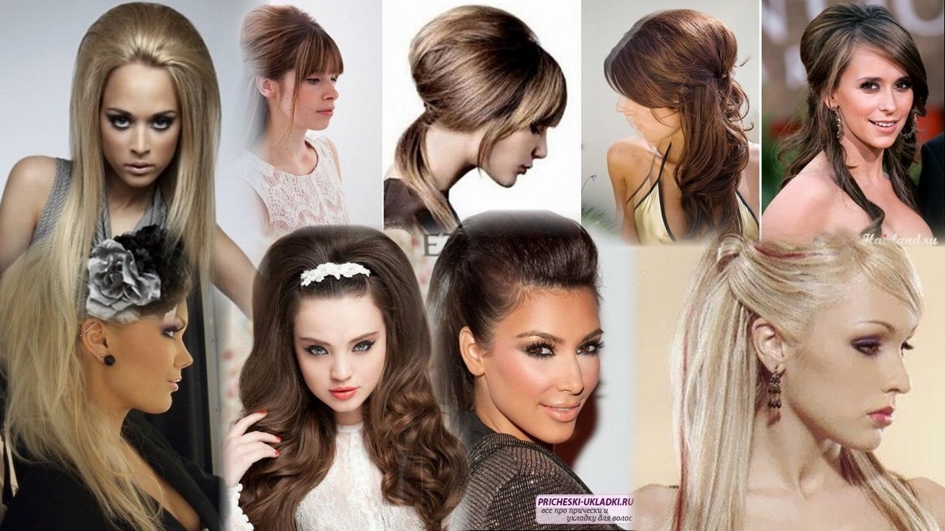 Причёска прямая на длинные волосы с начесом на свадьбу