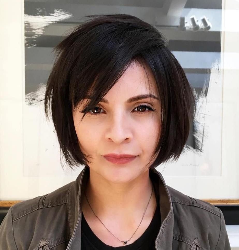 Стрижка Боб с челкой для круглого лица