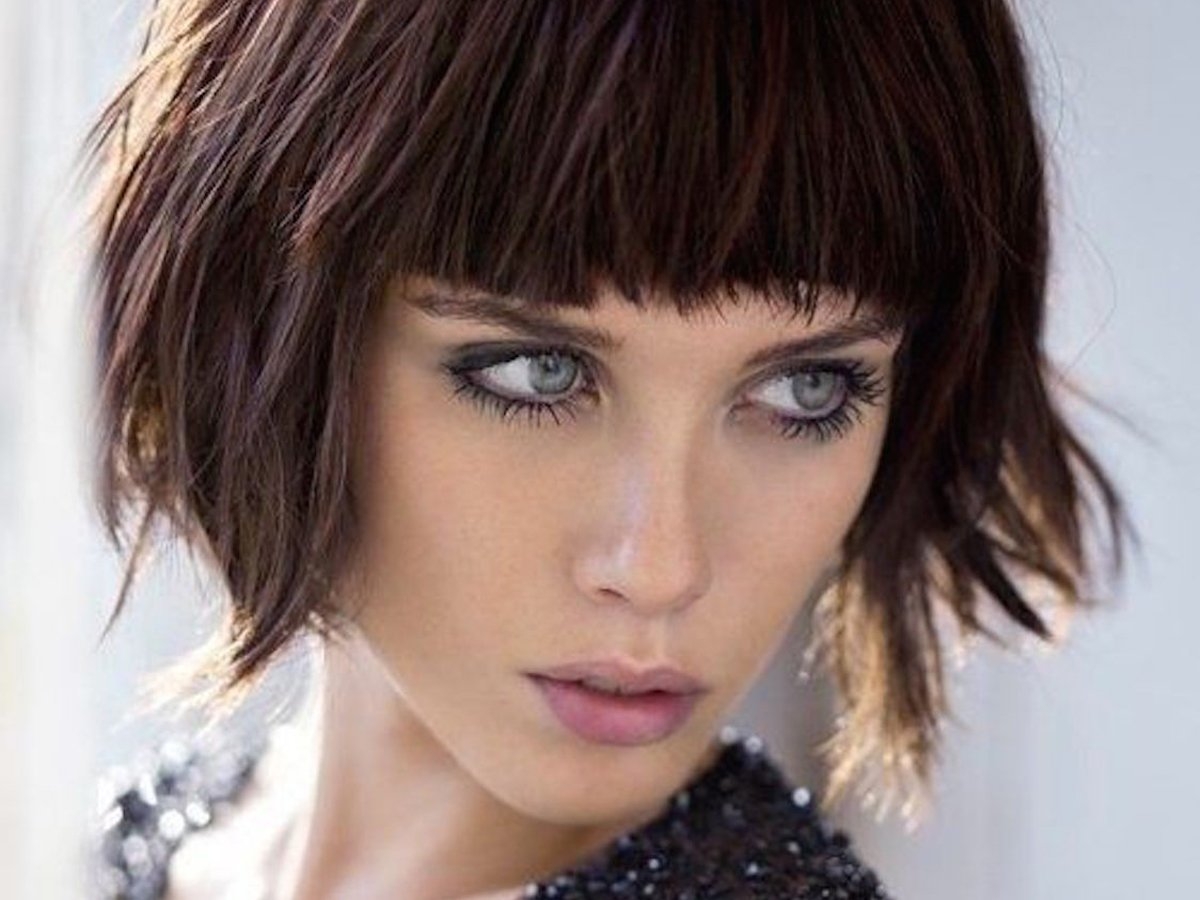 Стрижка рваное каре на короткие волосы с челкой