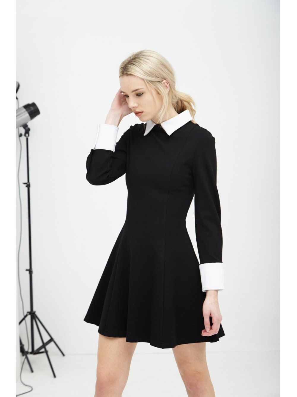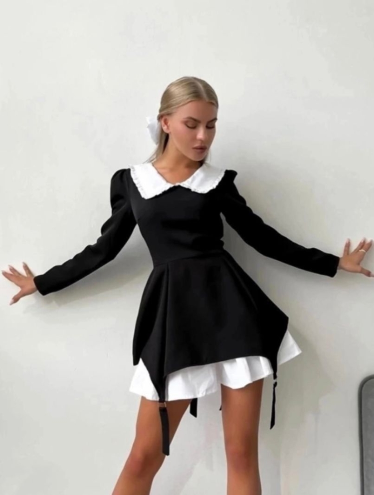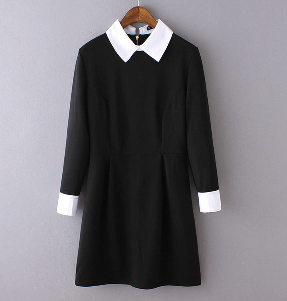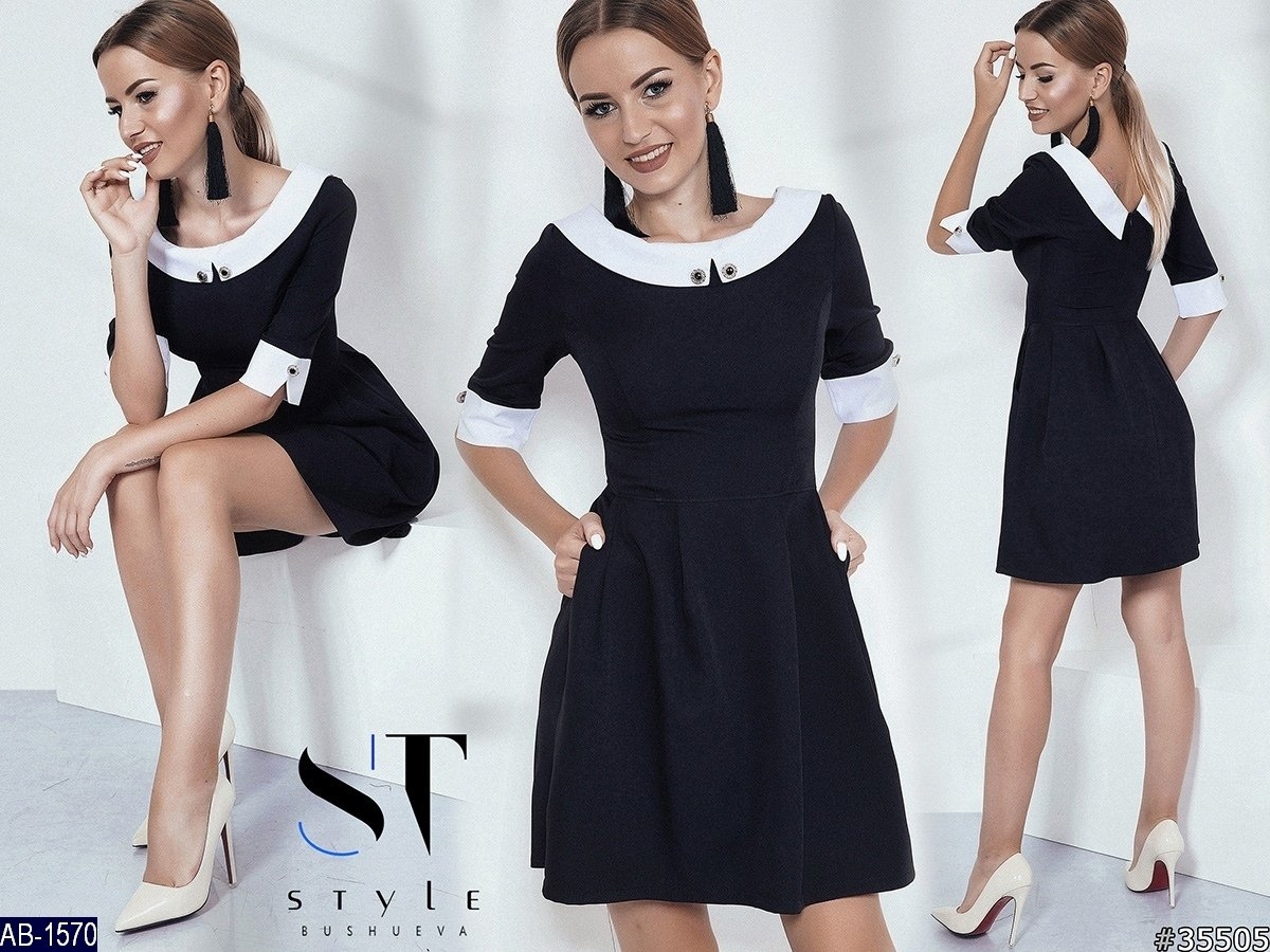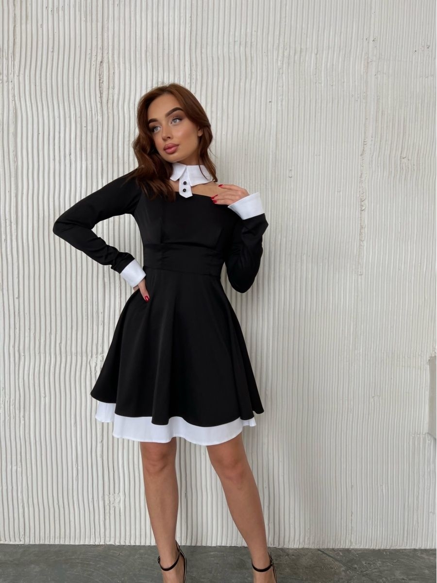 Черное платье с белым воротником