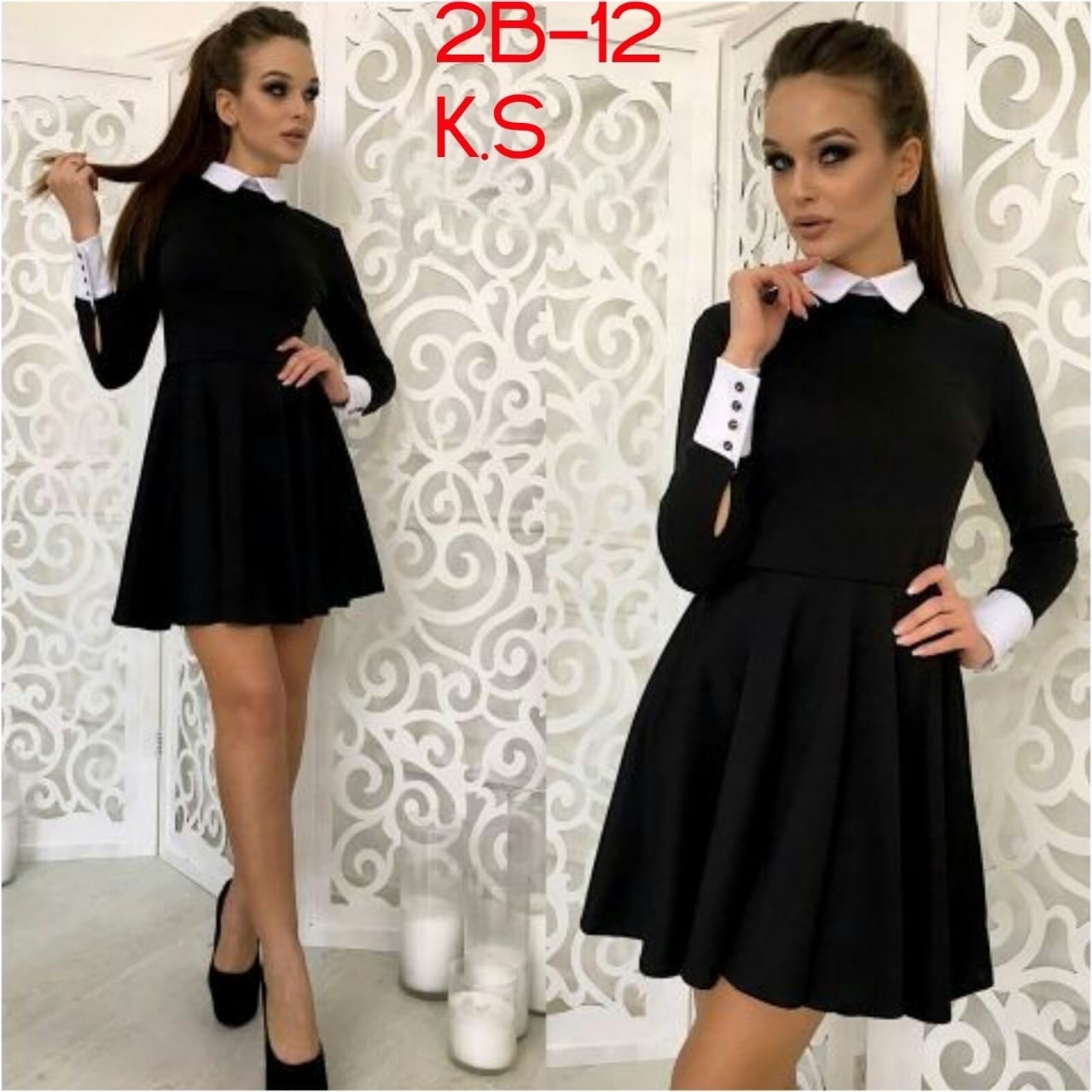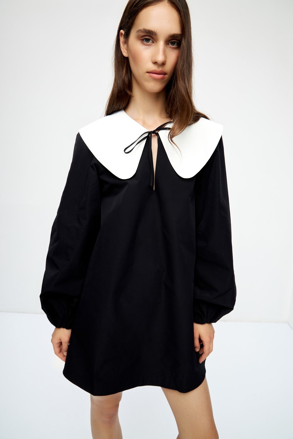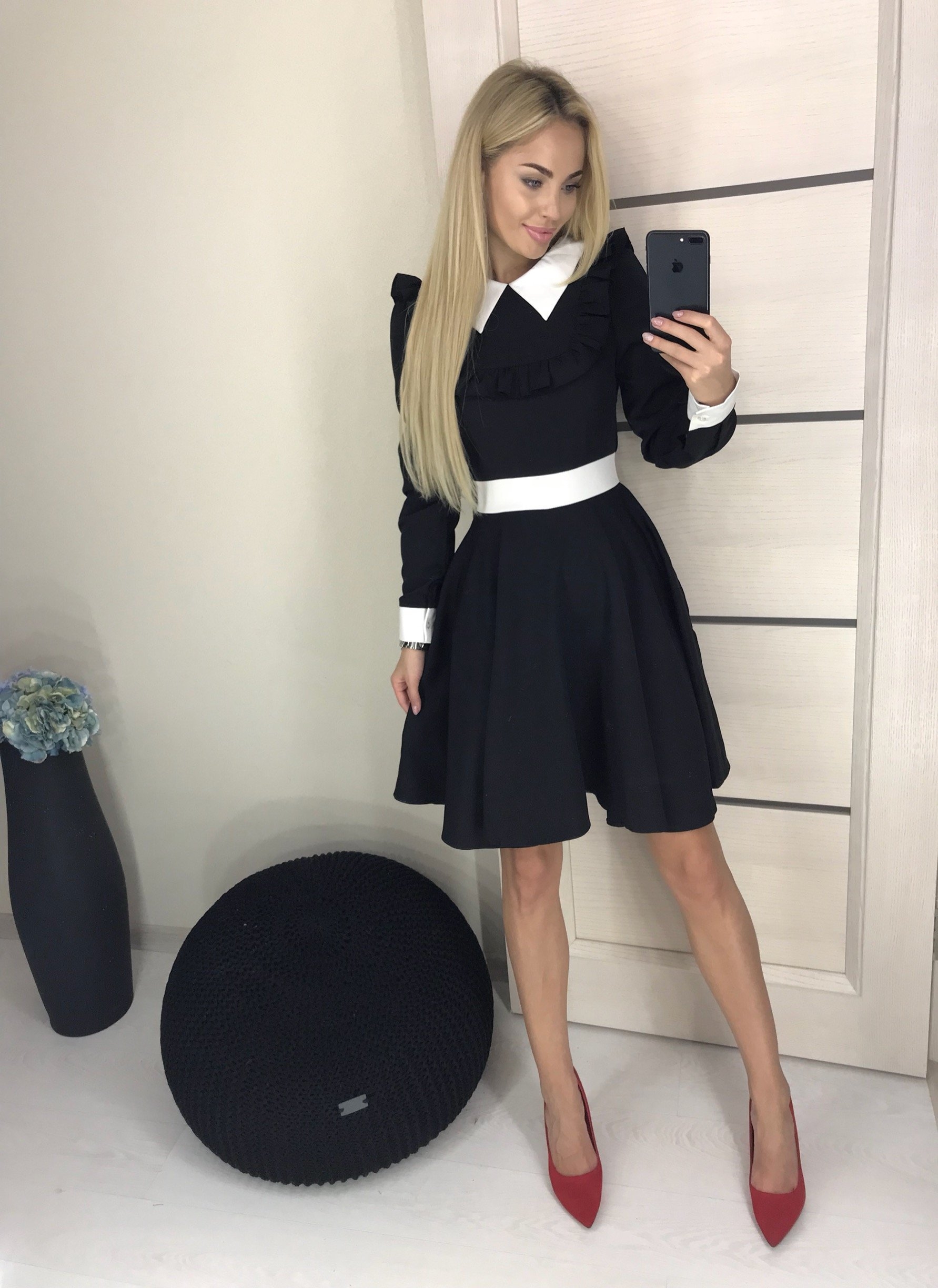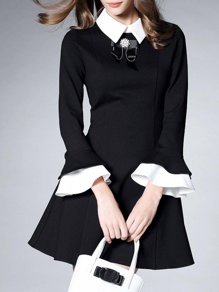 Черное платье с белым воротником