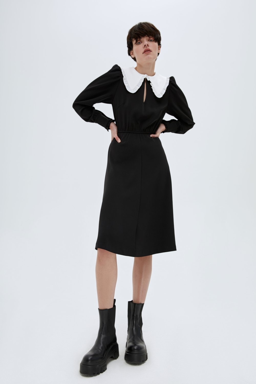 Платье Lime черное с белым воротником