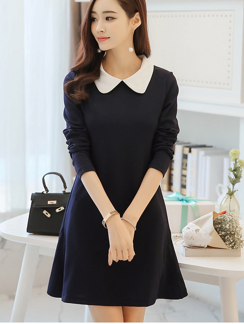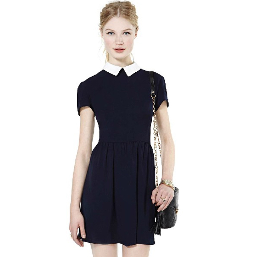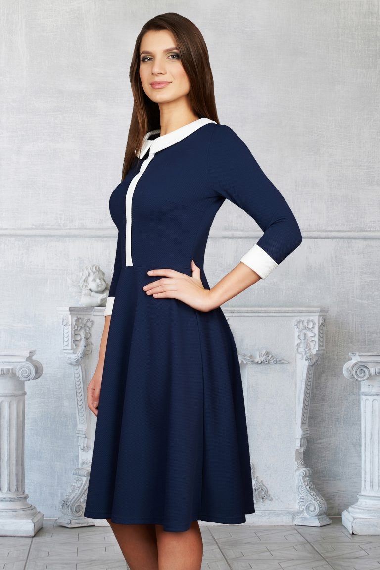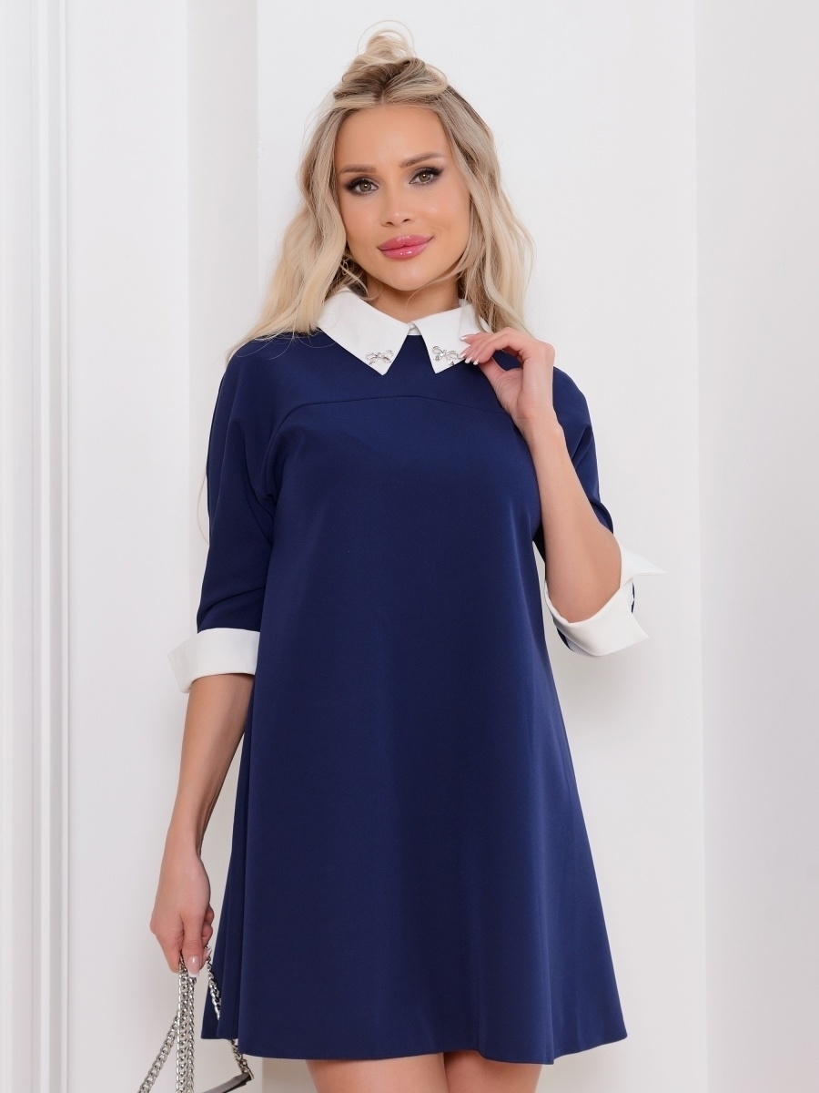 Синее платье с белым воротником