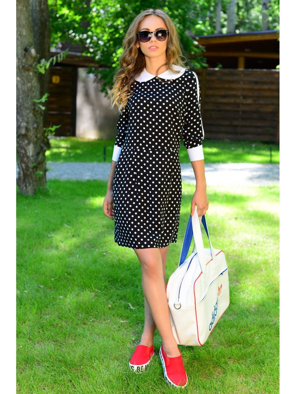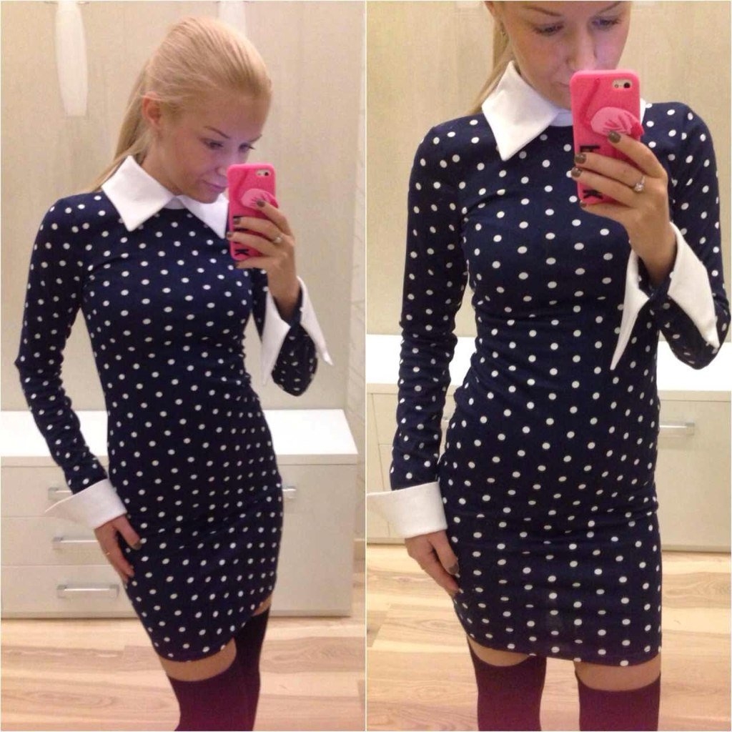 Платье в горох с белым воротником