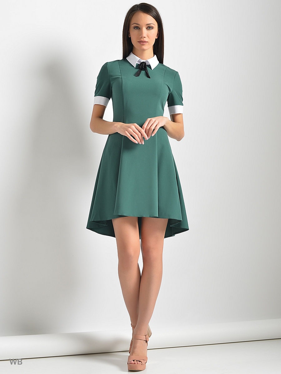 Зеленое платье с белым воротником