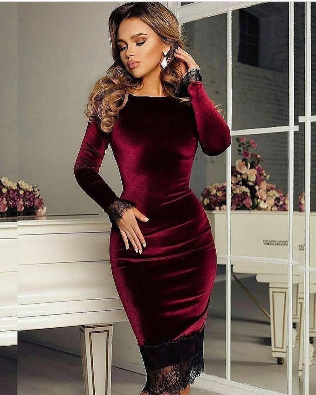 Бордовое бархатное платье