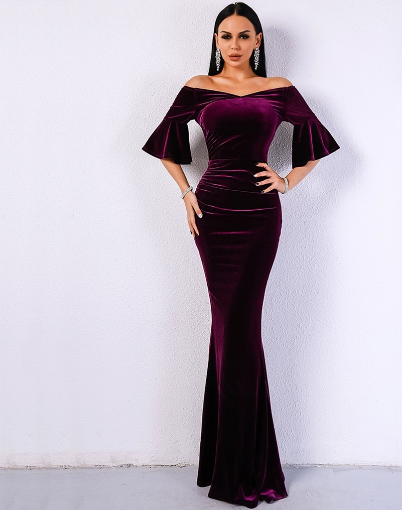 Длинное вечернее платье из бархата