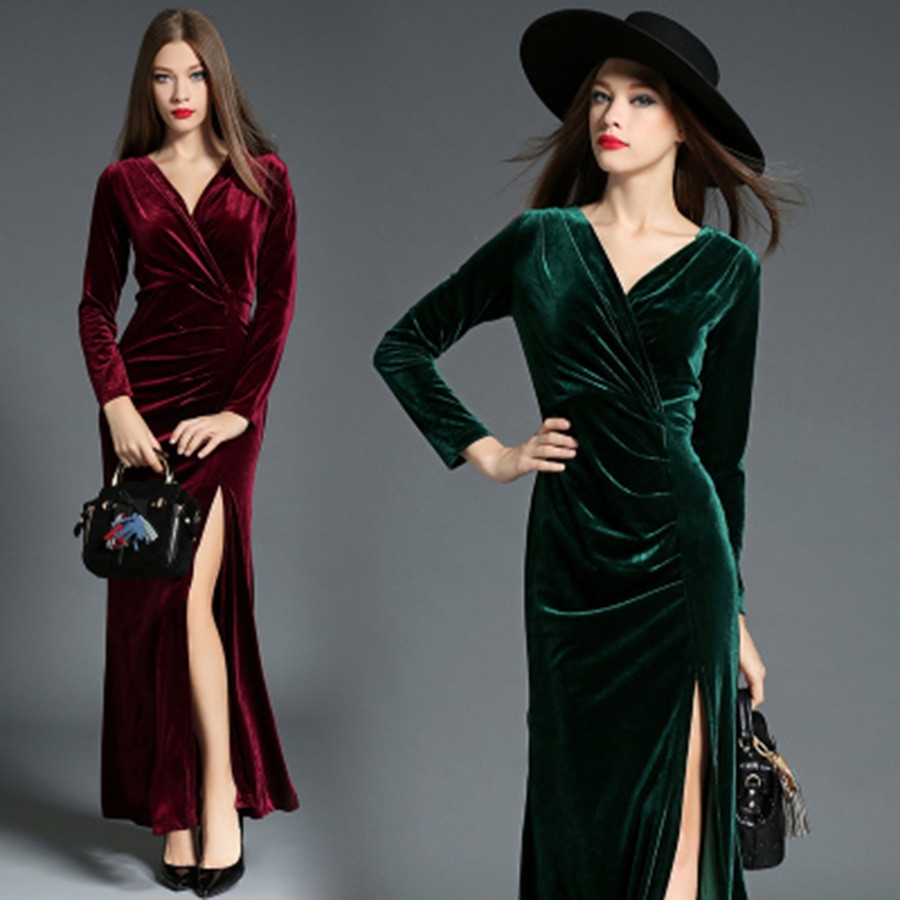 Длинные платья из велюра