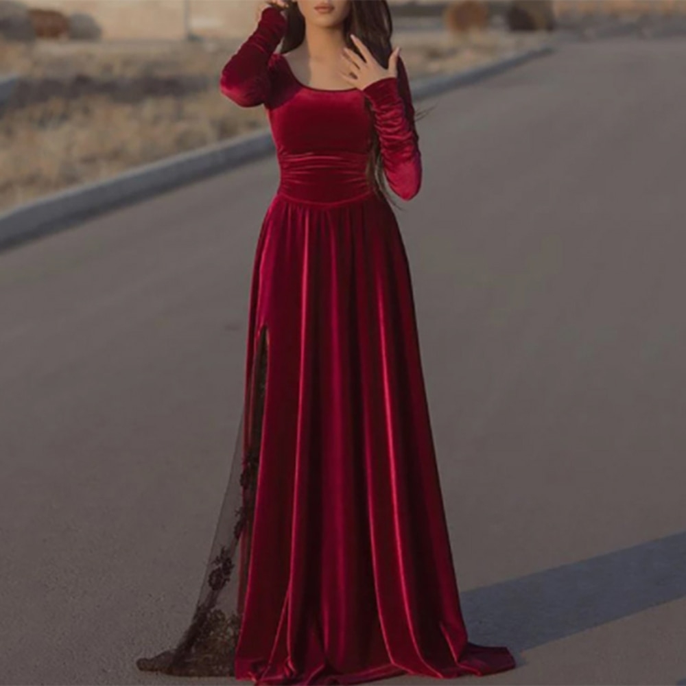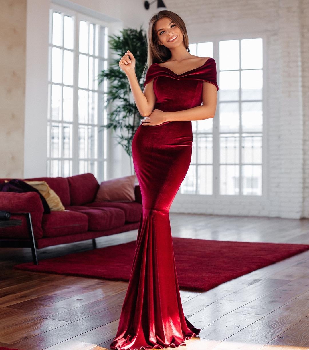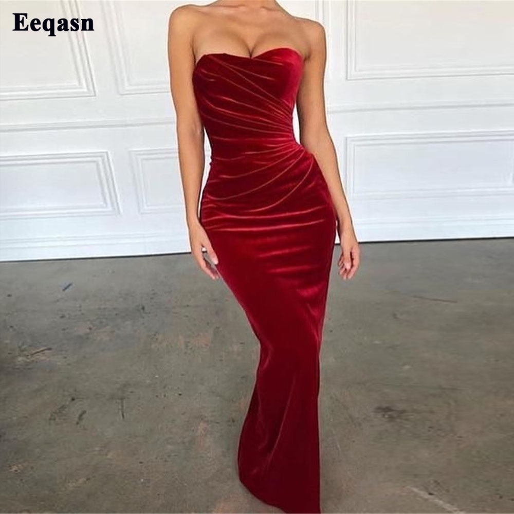 Длинные вечерние красный бархатный платья