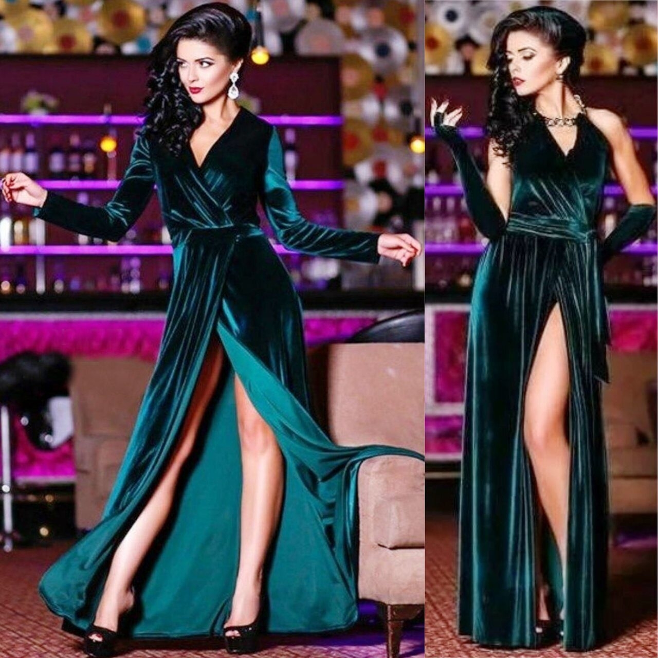 Изумрудное бархатное платье