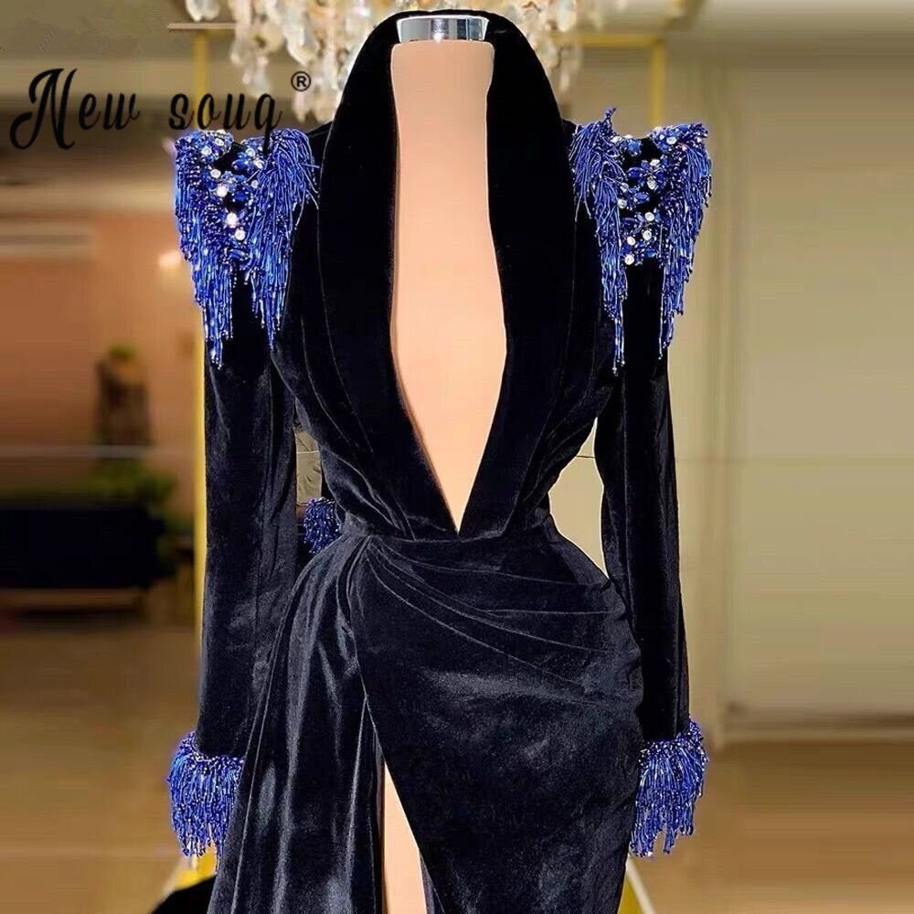 Синее бархатное вечернее платье