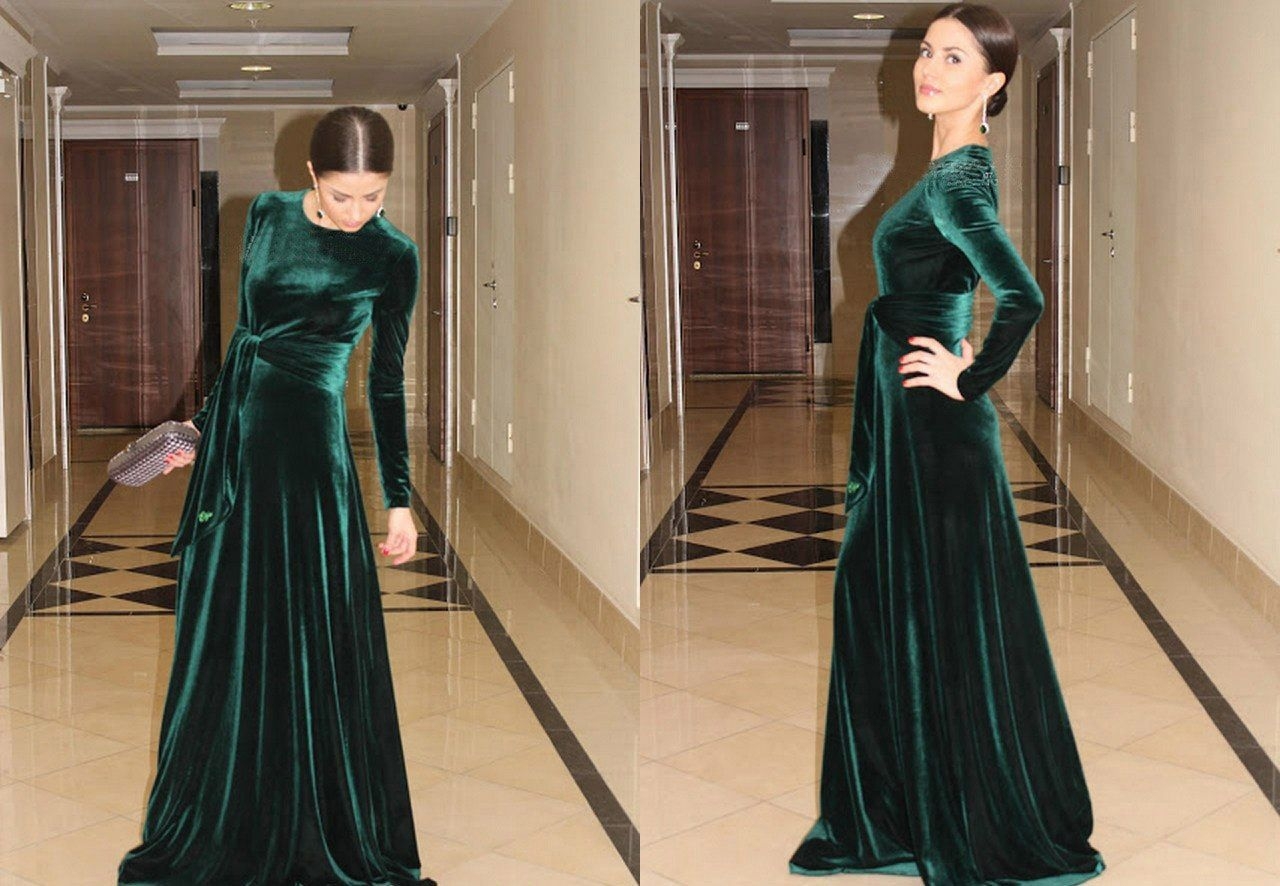 Зеленое бархатное платье