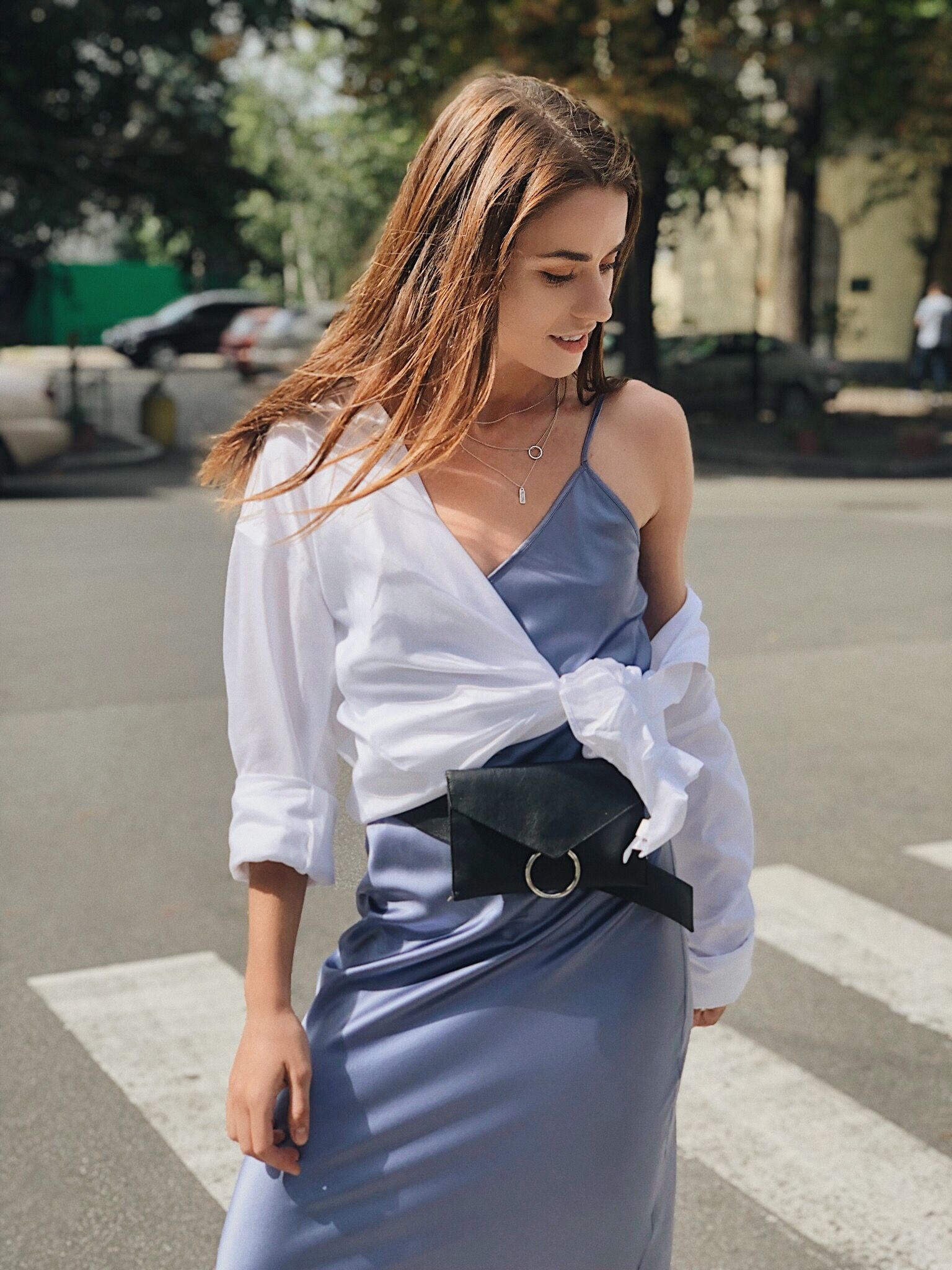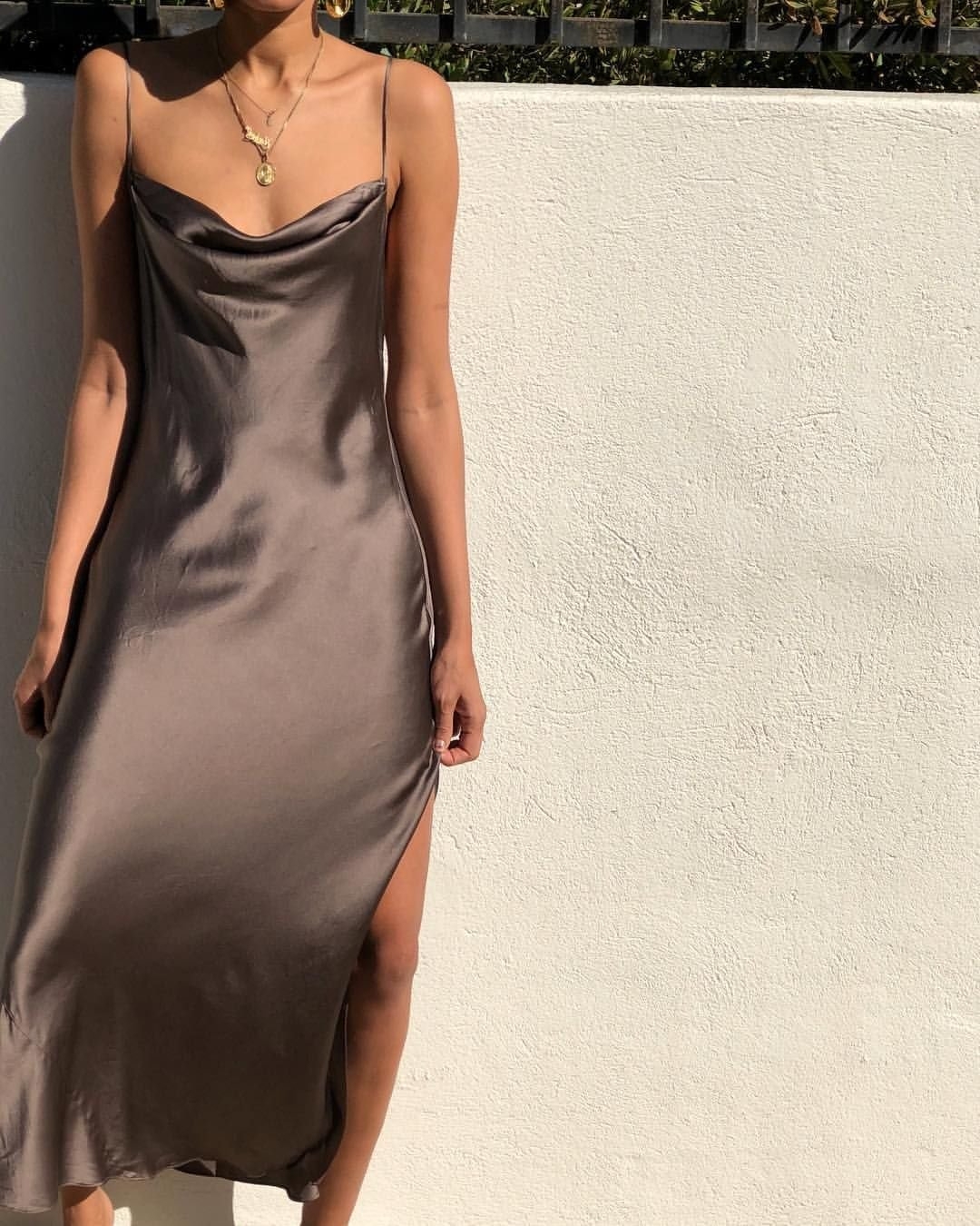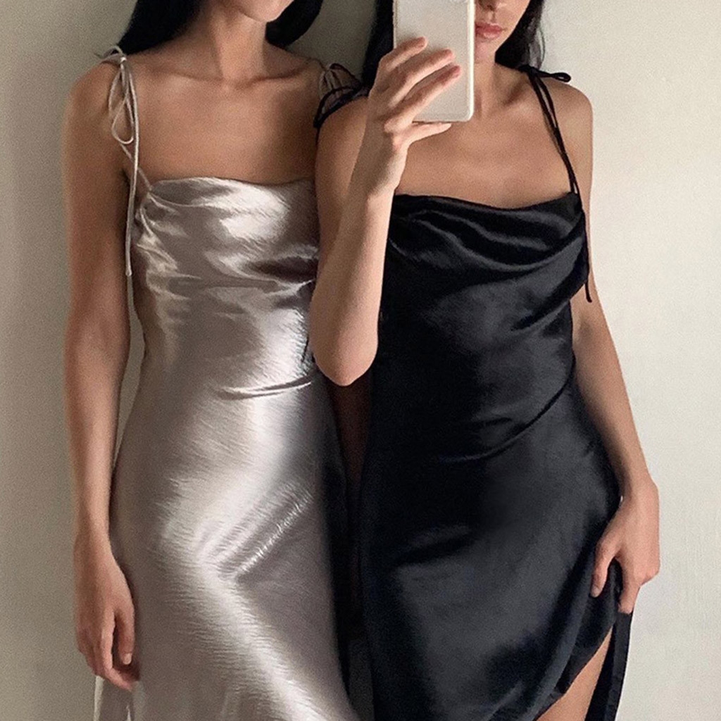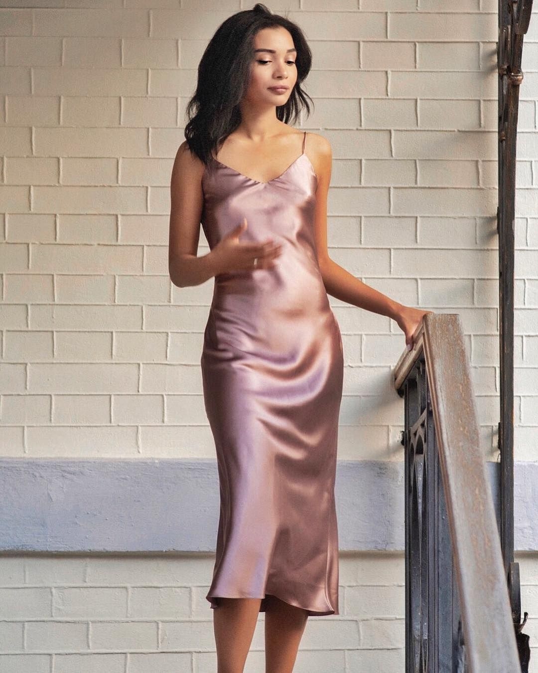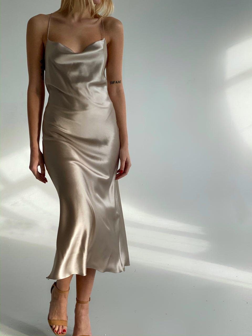Платье комбинация из шелка на тонких бретелях 12storeez