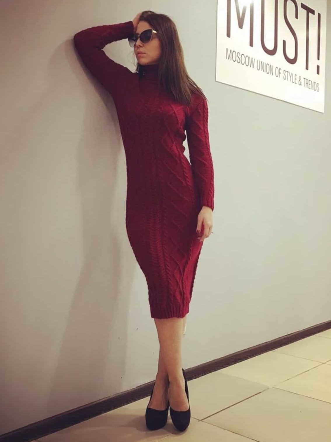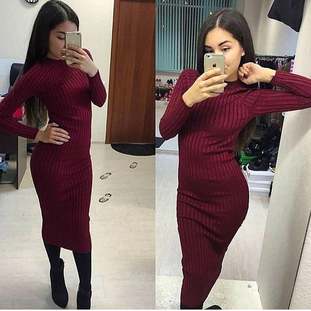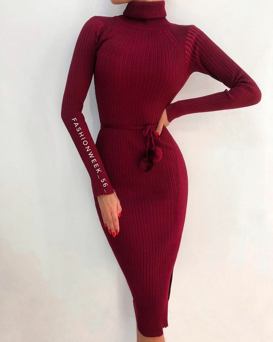 Бордовое платье теплое
