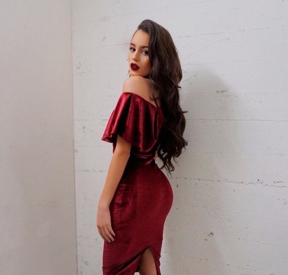Девушка в бордовом платье