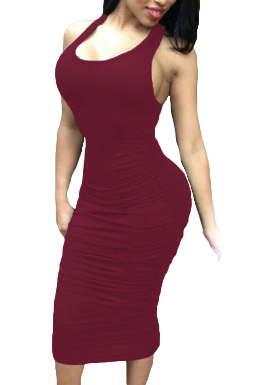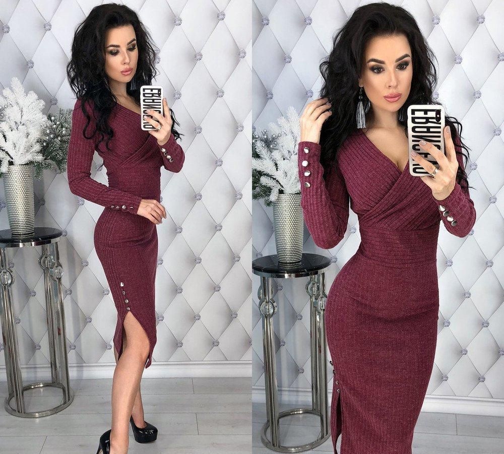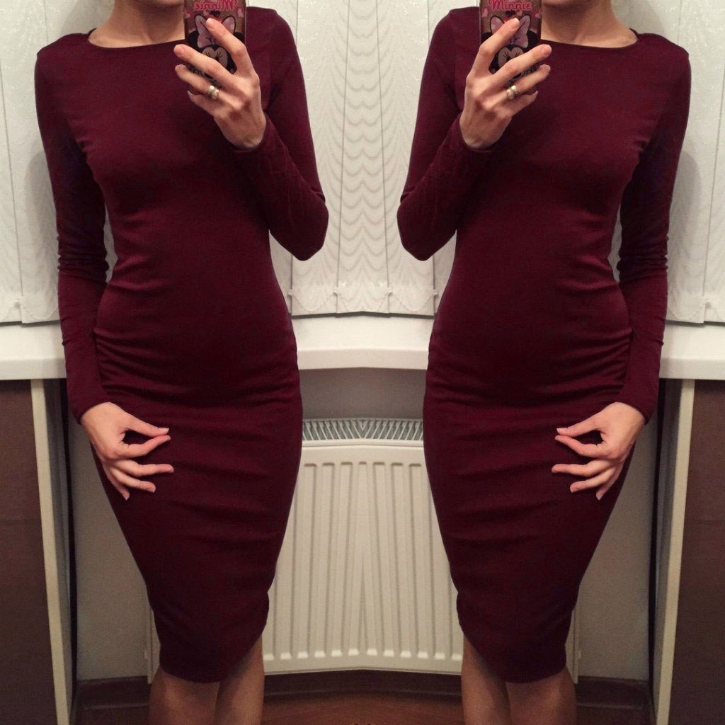 Бордовое обтягивающее платье