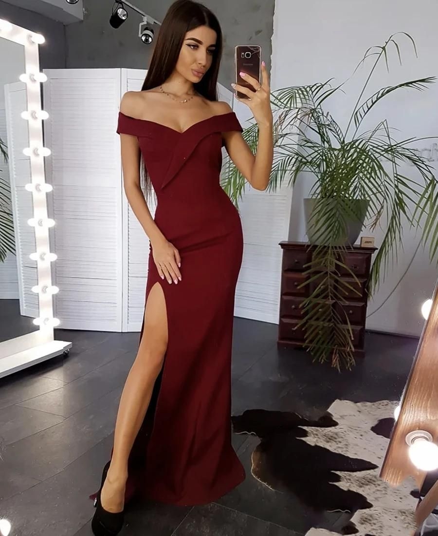 Длинное обтягивающее платье бордовое
