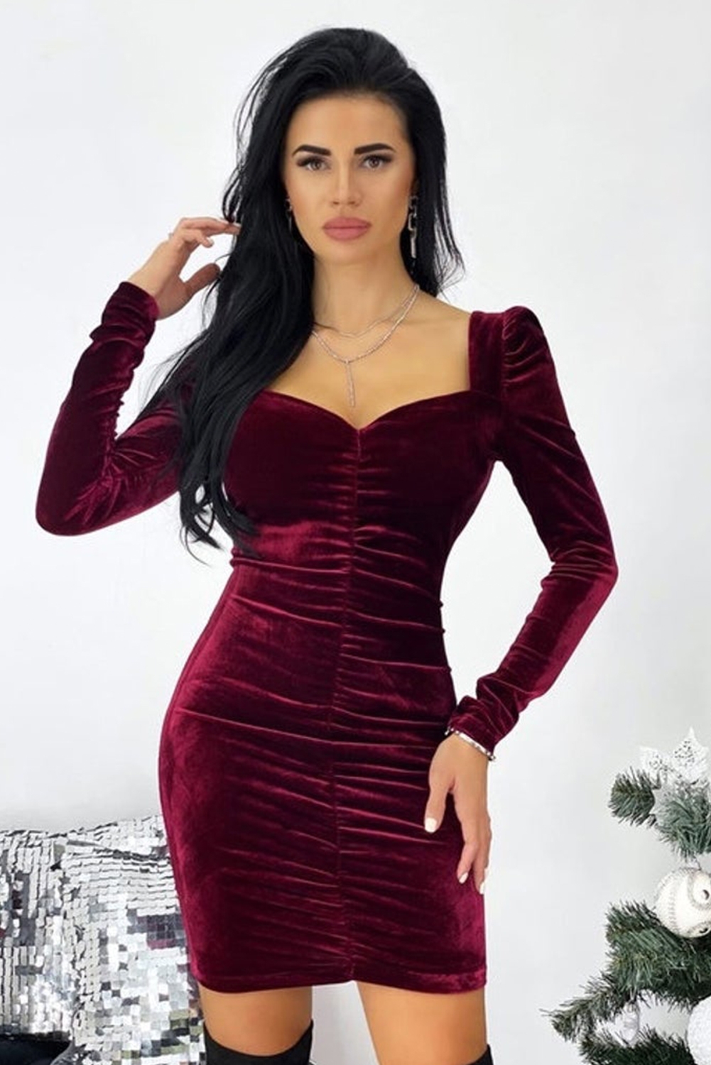 Бордовое бархатное платье