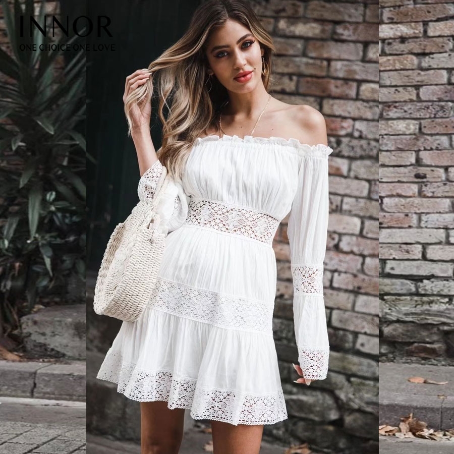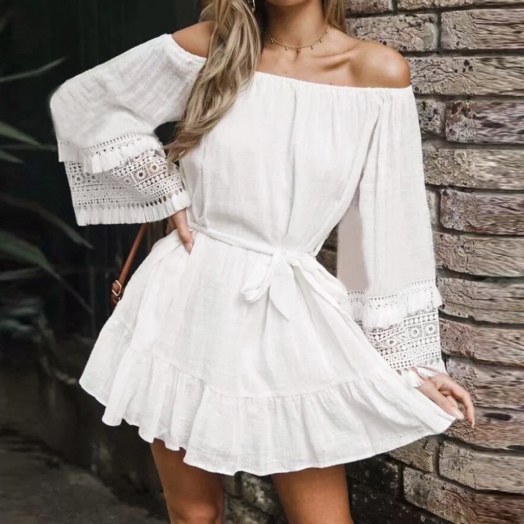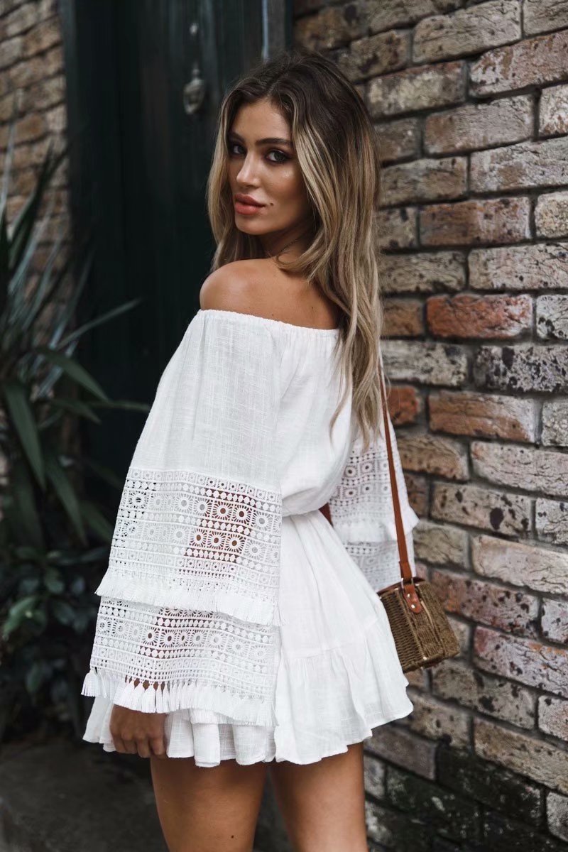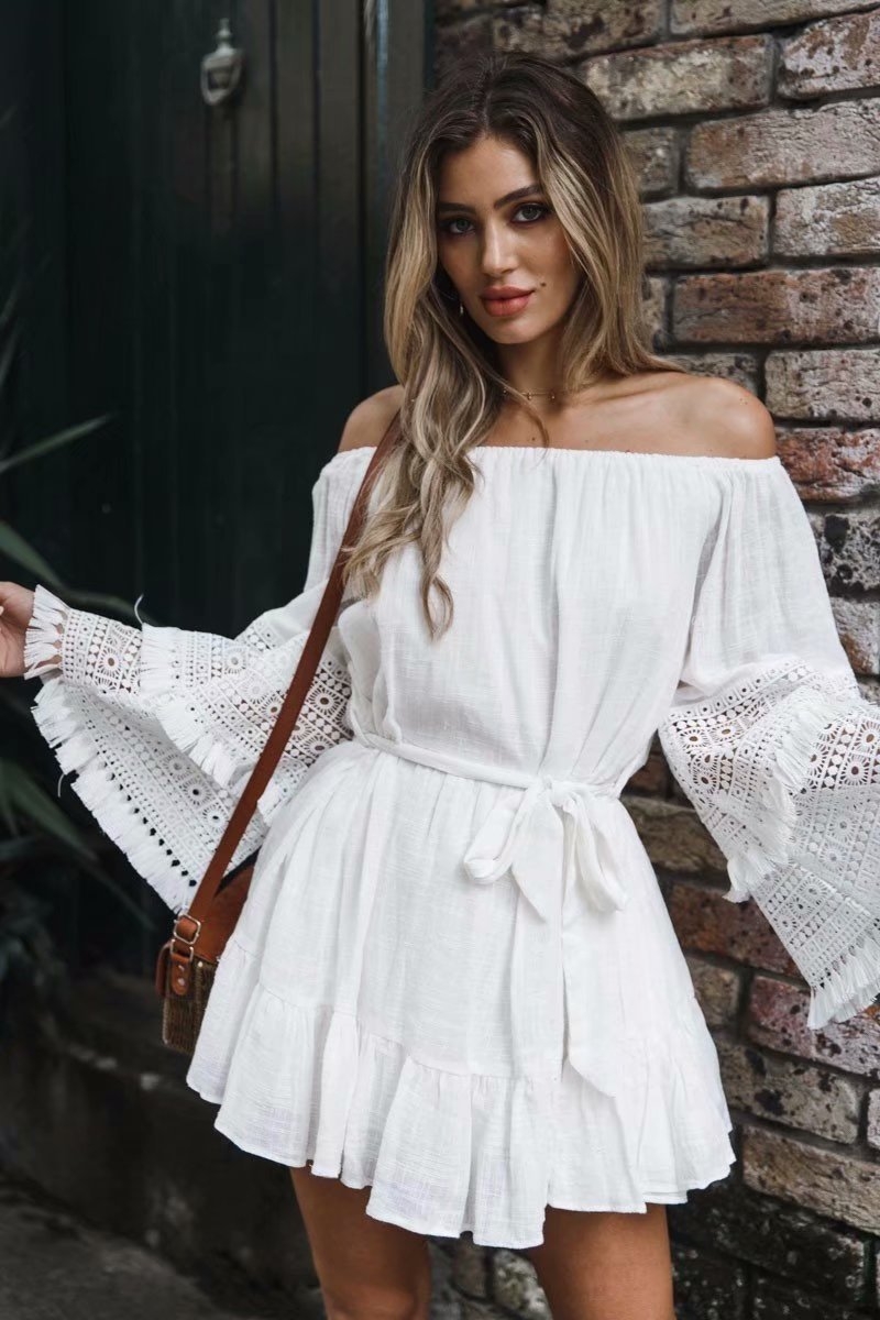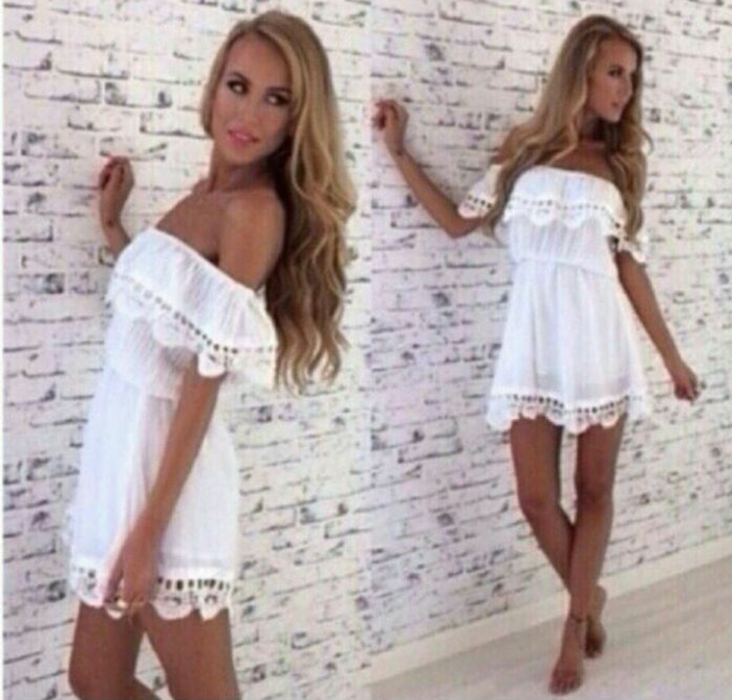Платье пляжное белое с открытыми плечами