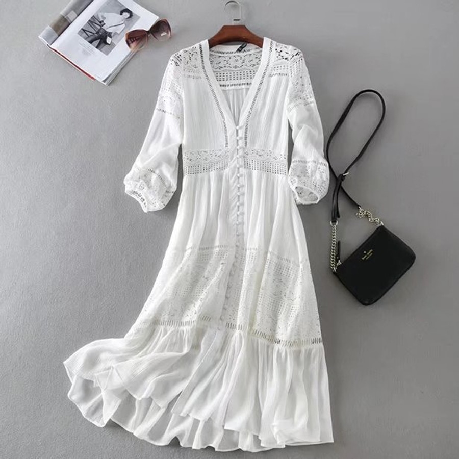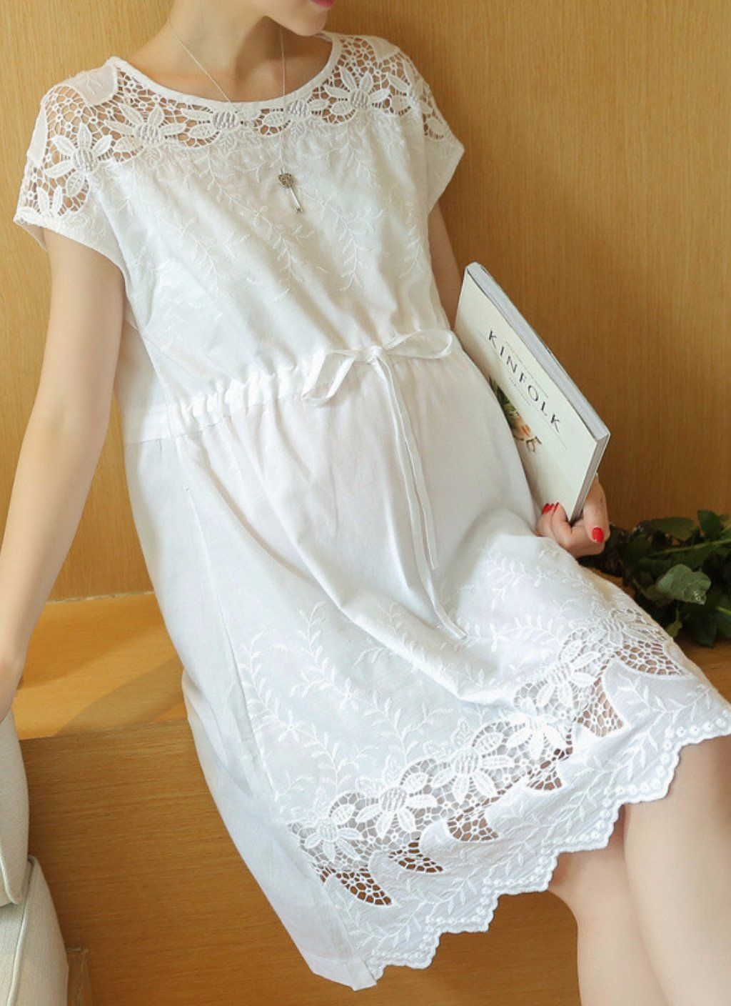 Ажурное белое летнее платье