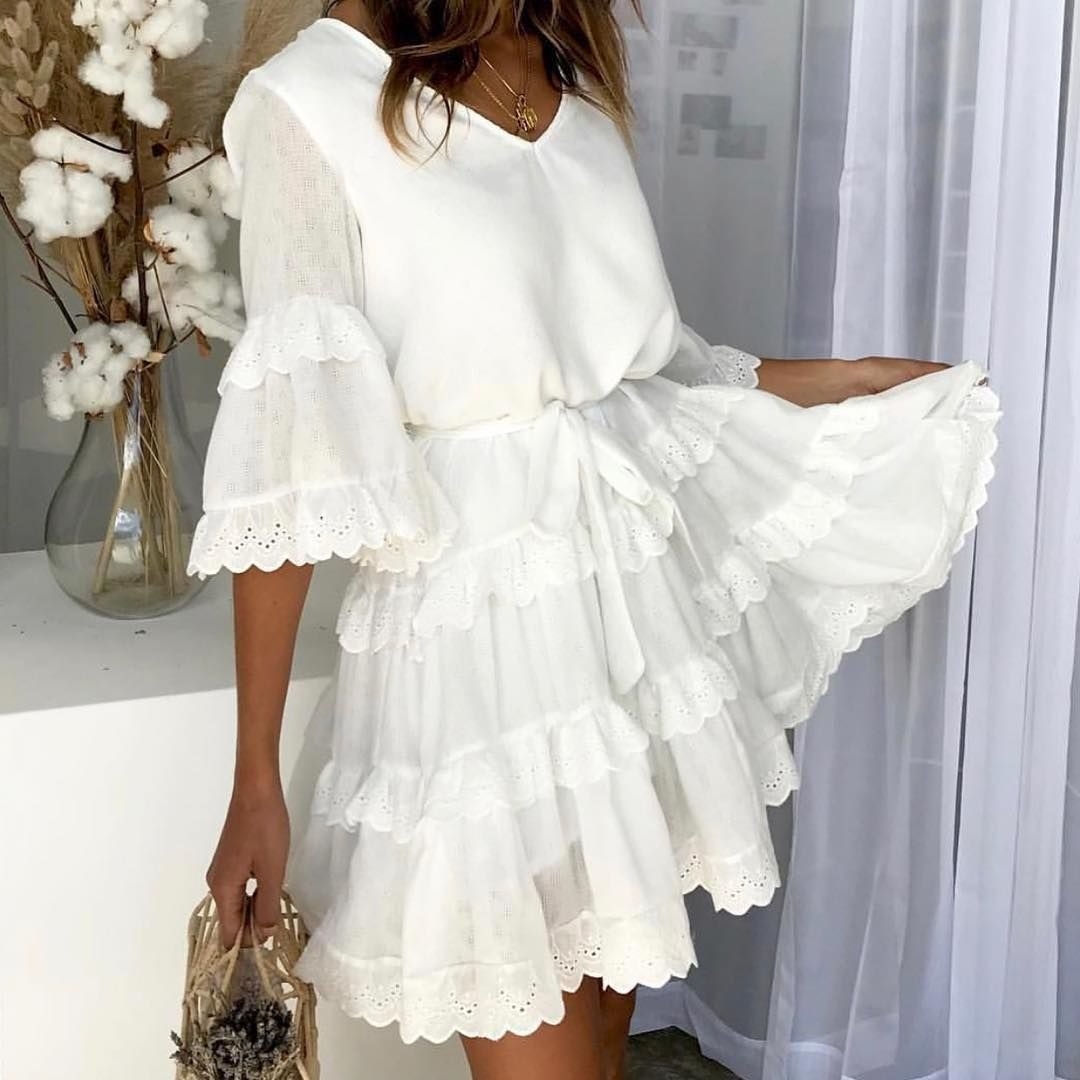 Белое платье с оборками