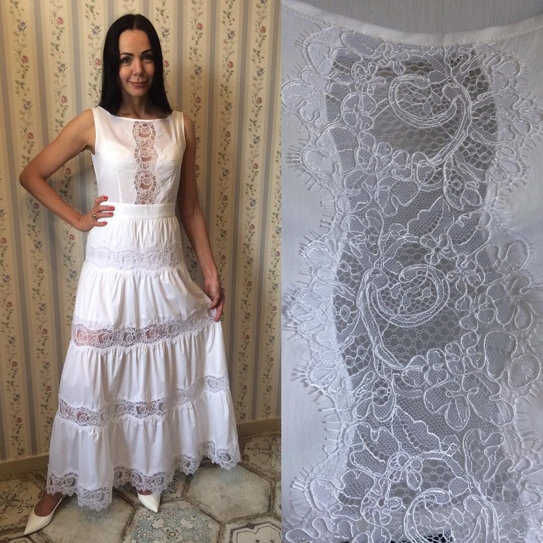 Белое хлопковое платье с кружевом на торжество