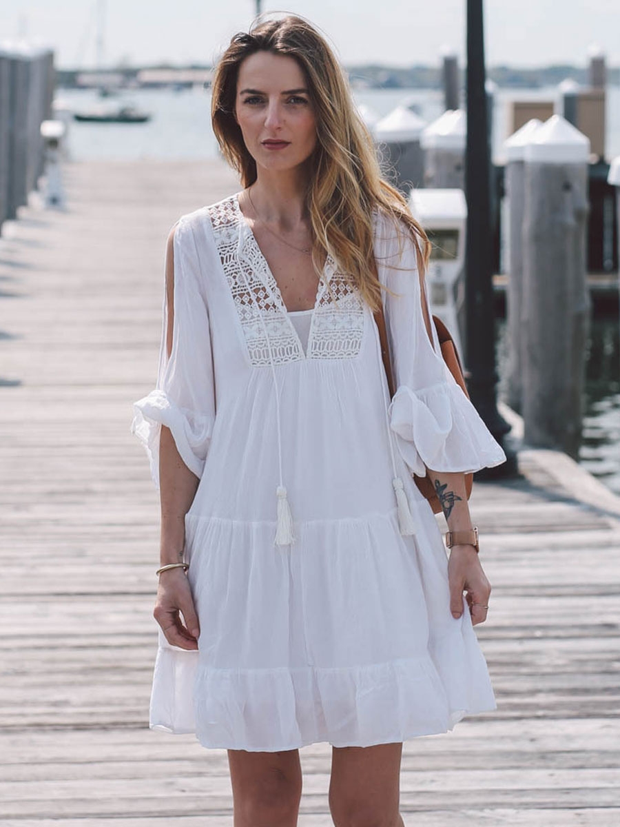 Белое пляжное платье