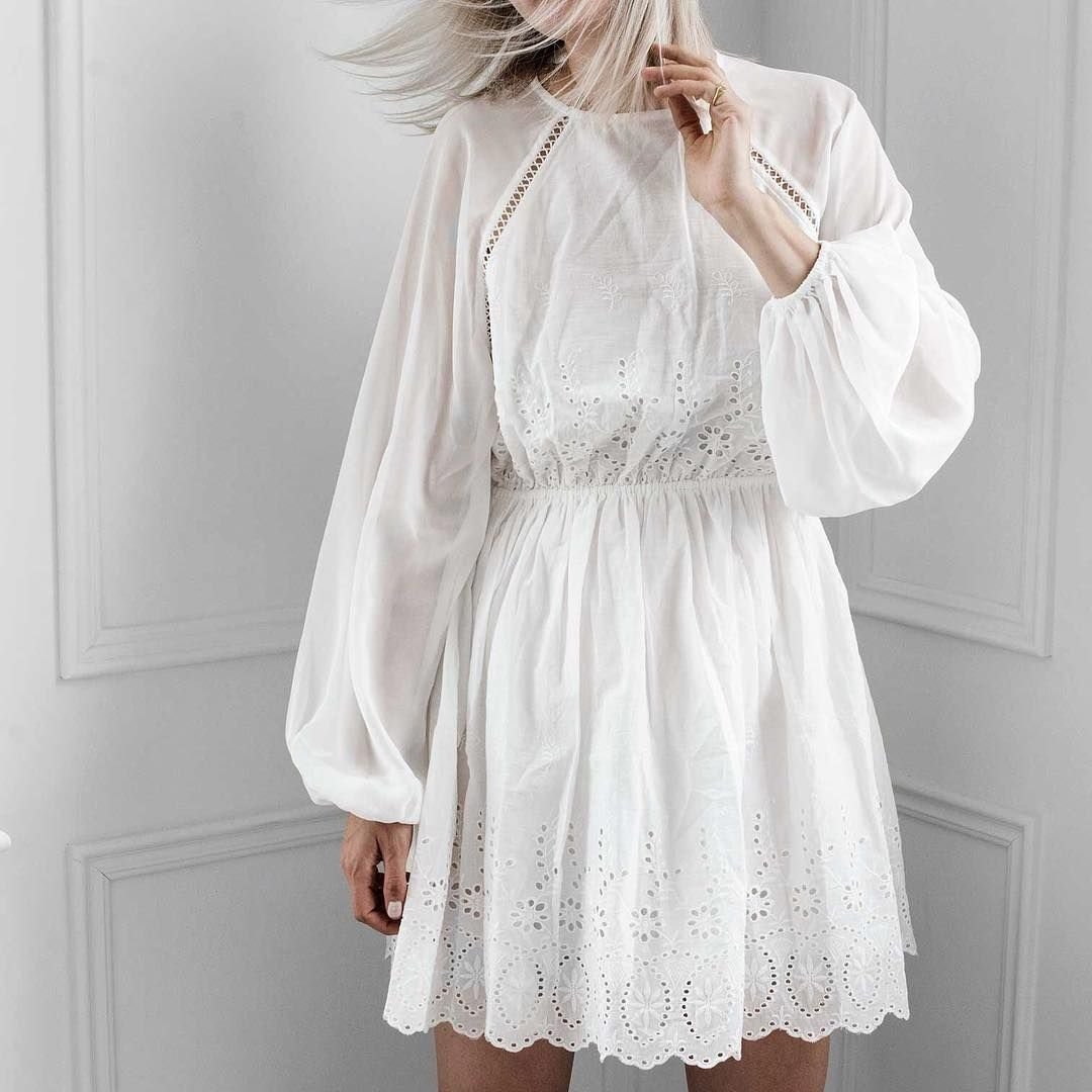 Белое платье с рукавами фонариками