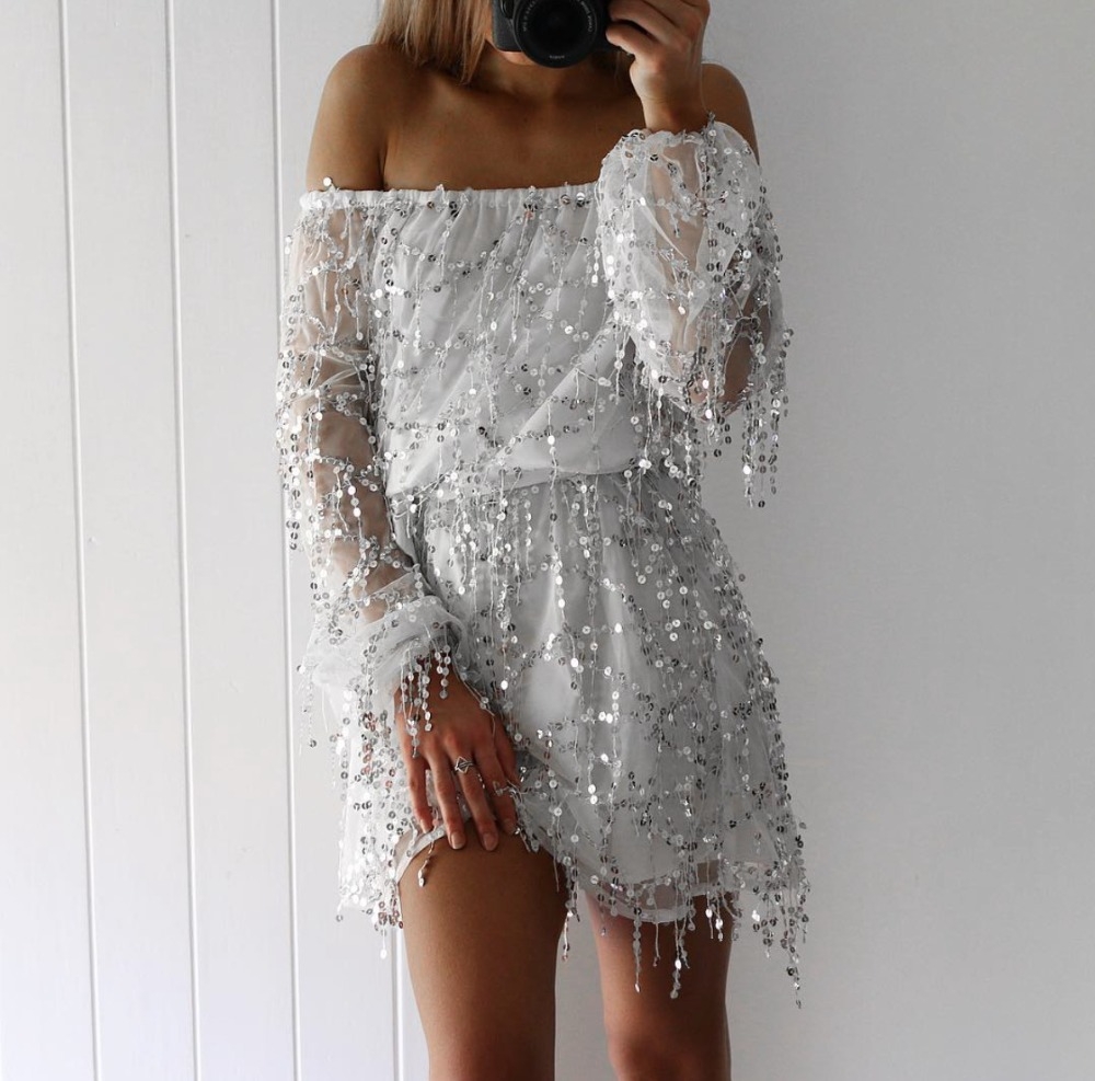 Silver Sequin Mini Dress