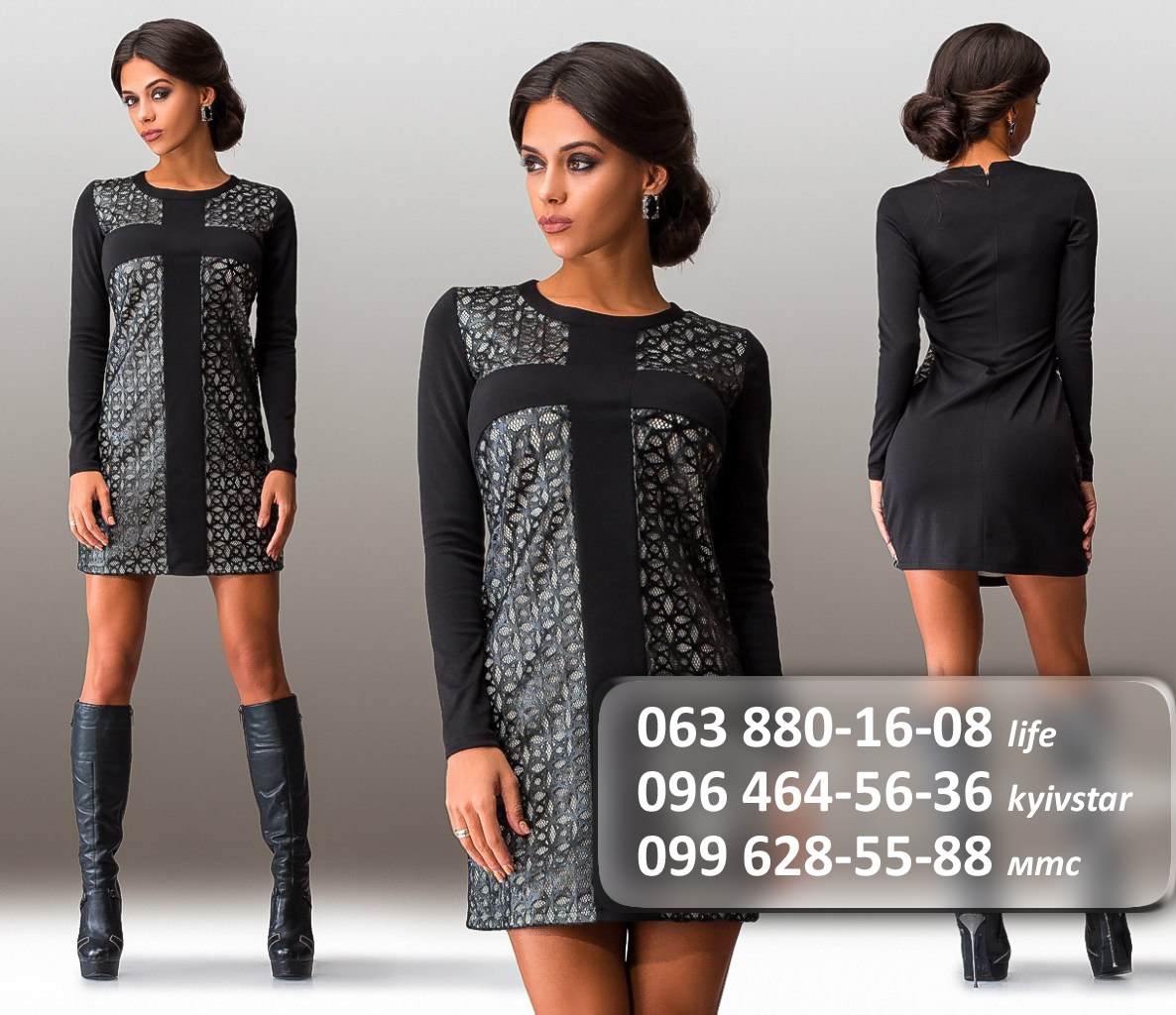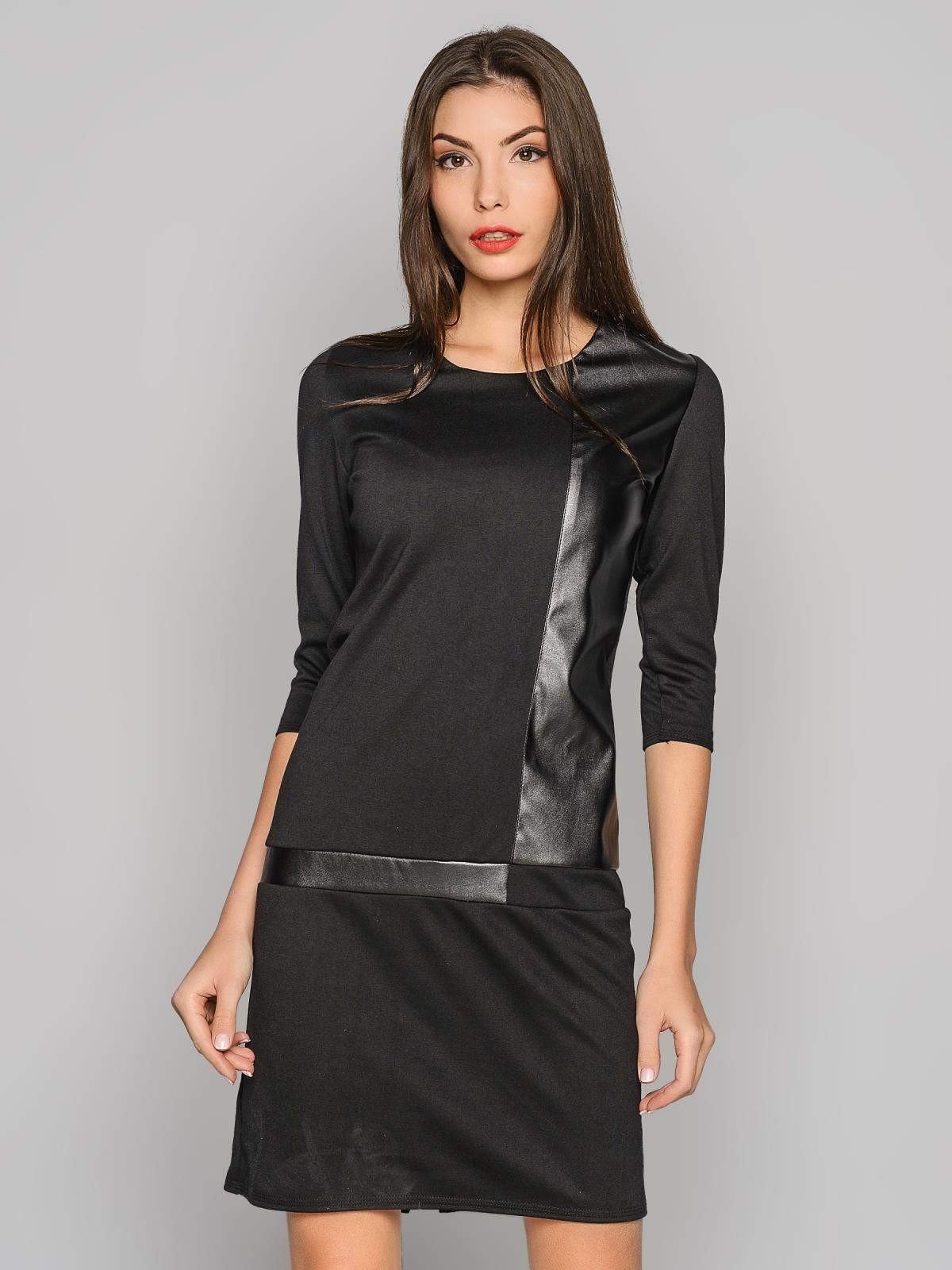 Черное платье с элементами кожи