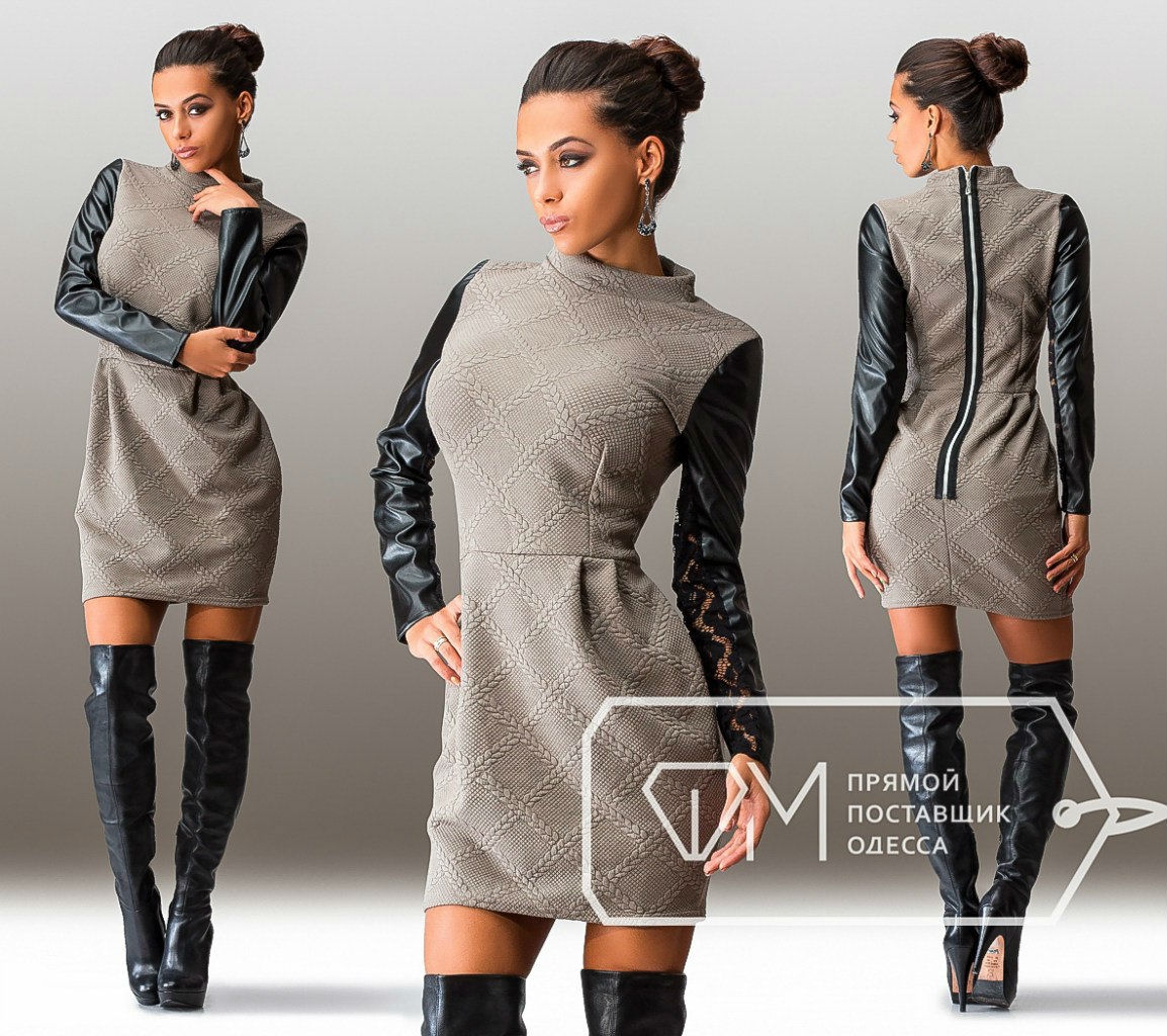Стильные платье трикотаж и кожа