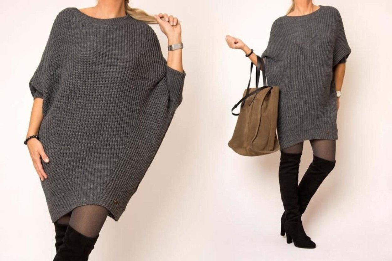 Платье оверсайз с рукавами летучая мышь спицами