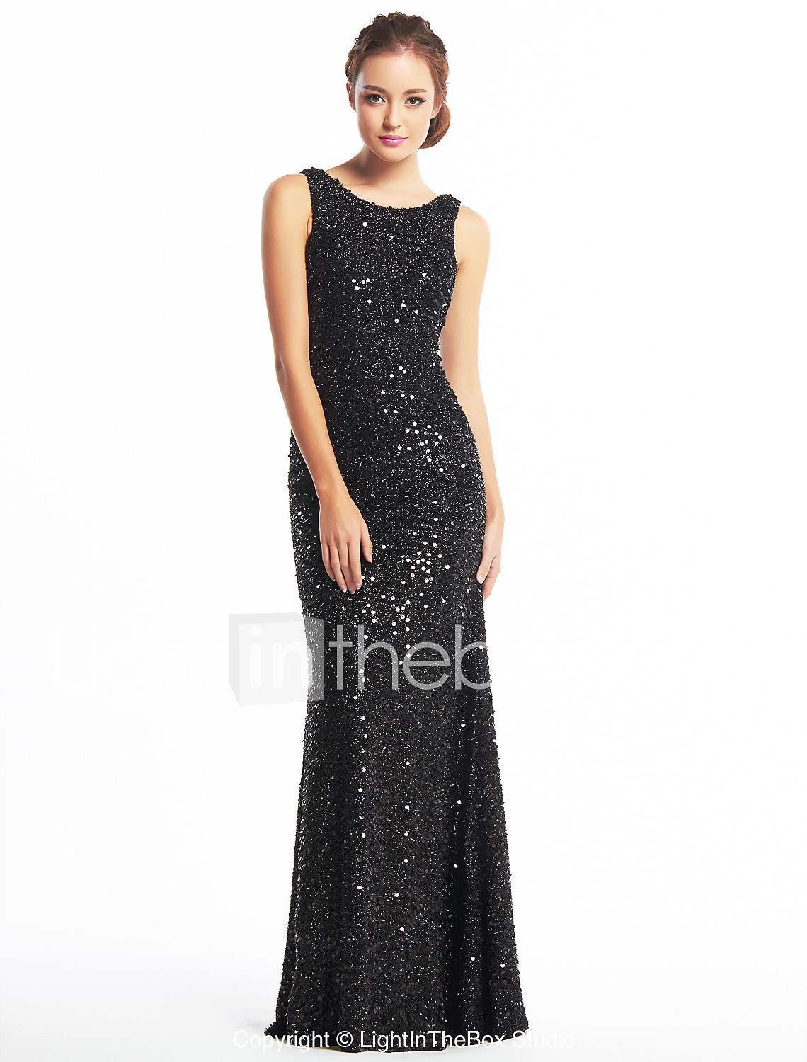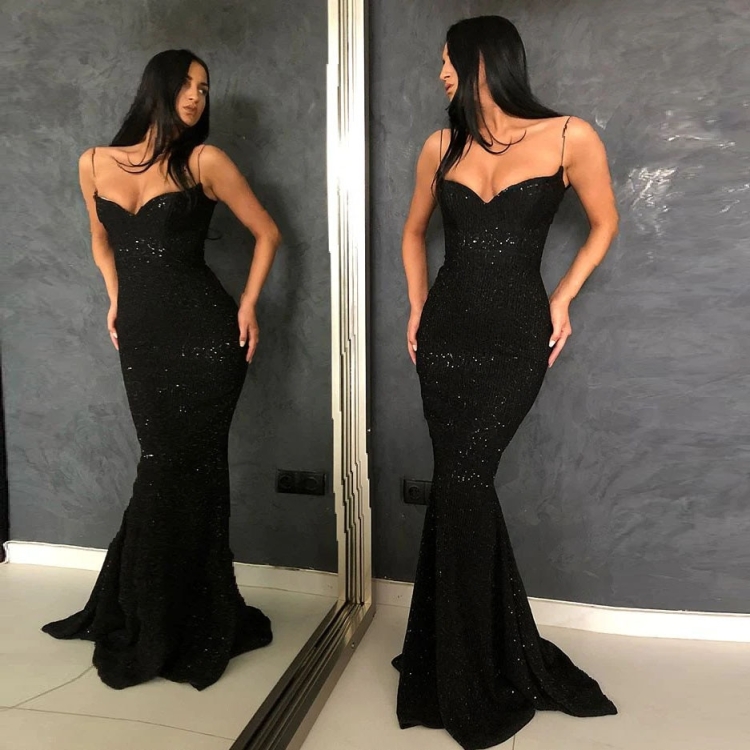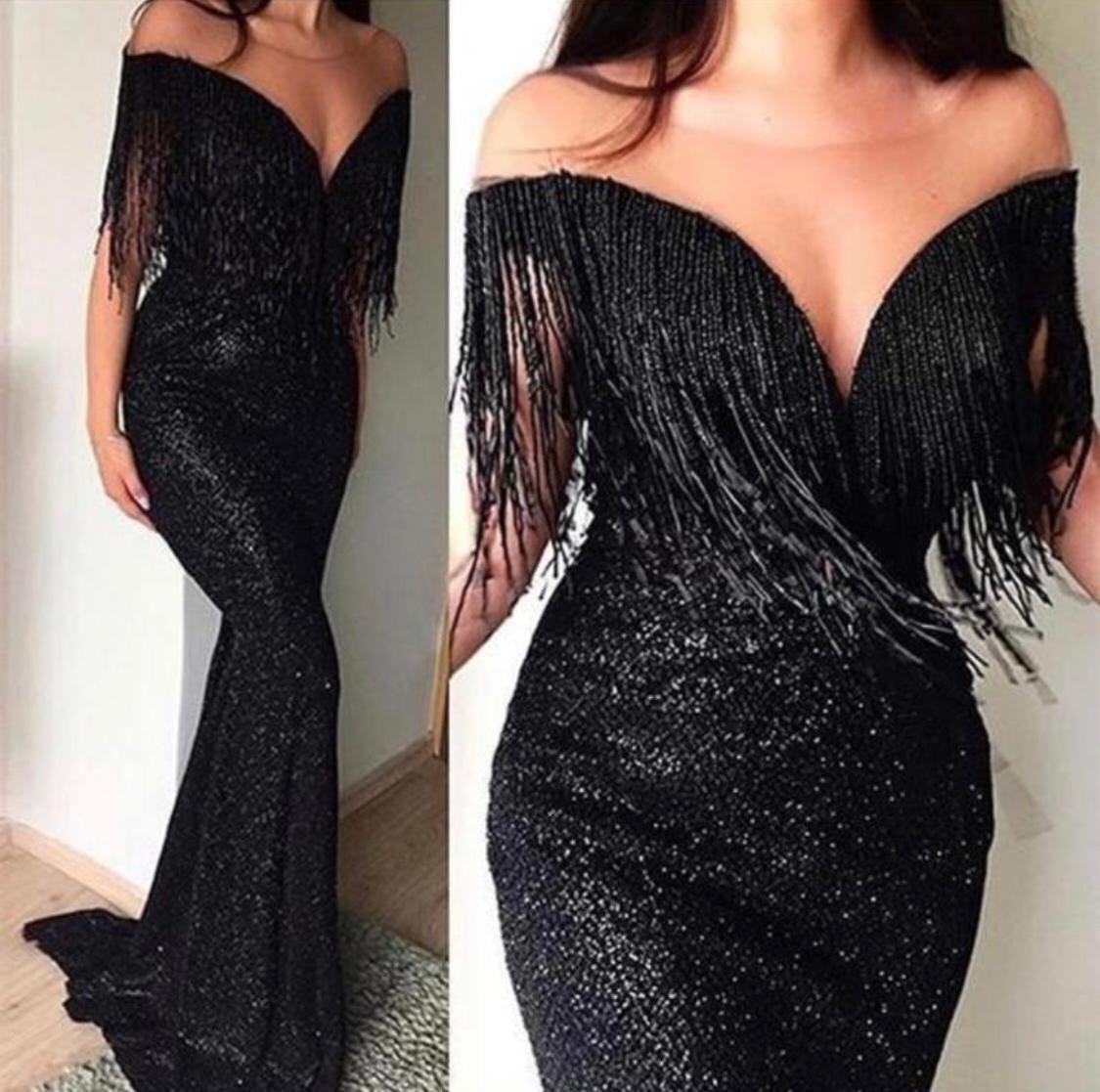 Robe de soiree, черное блестящее вечернее платье