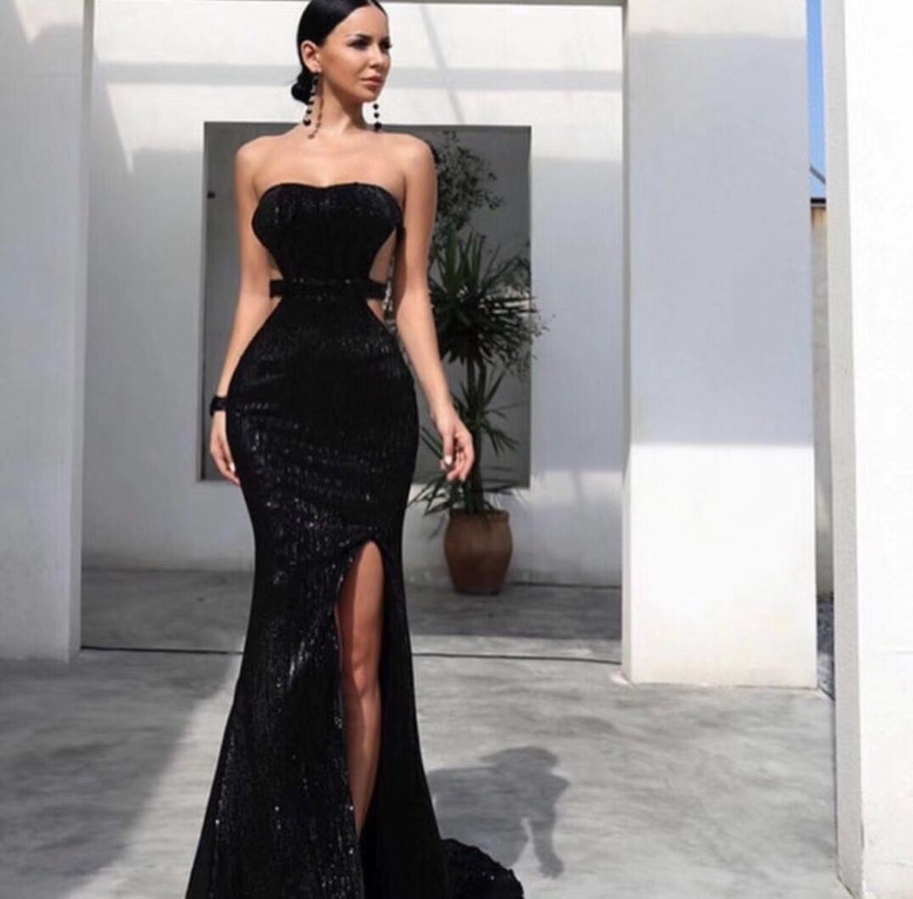 Черное вечернее платье с блестками