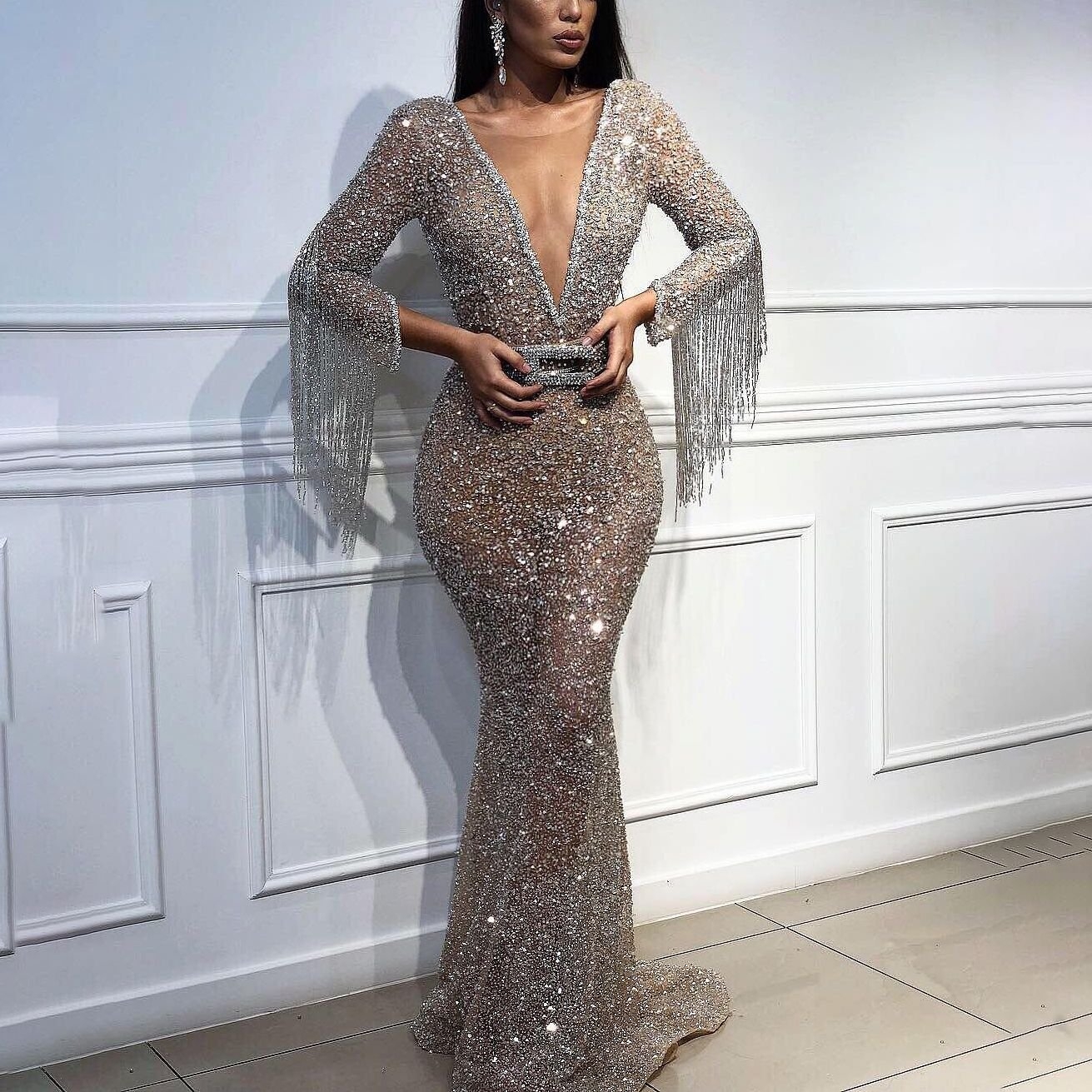Платье с пайетками в пол