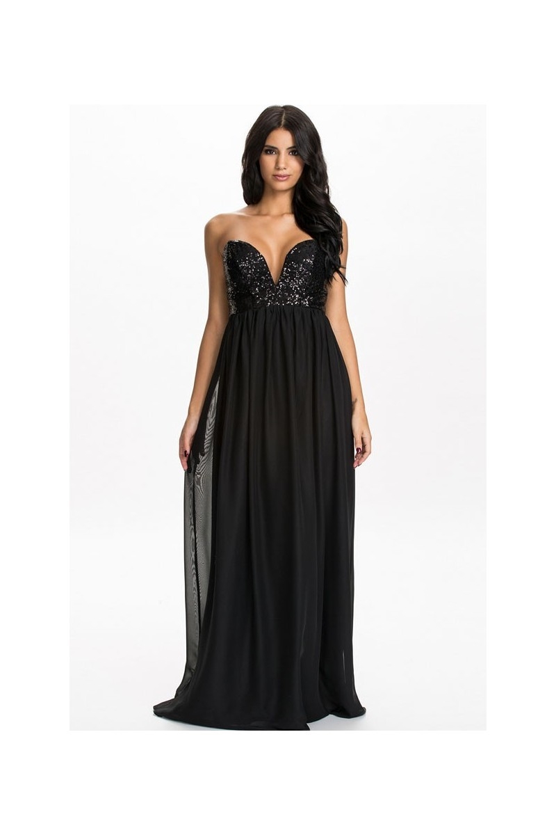 Черное платье в пол с пайетками