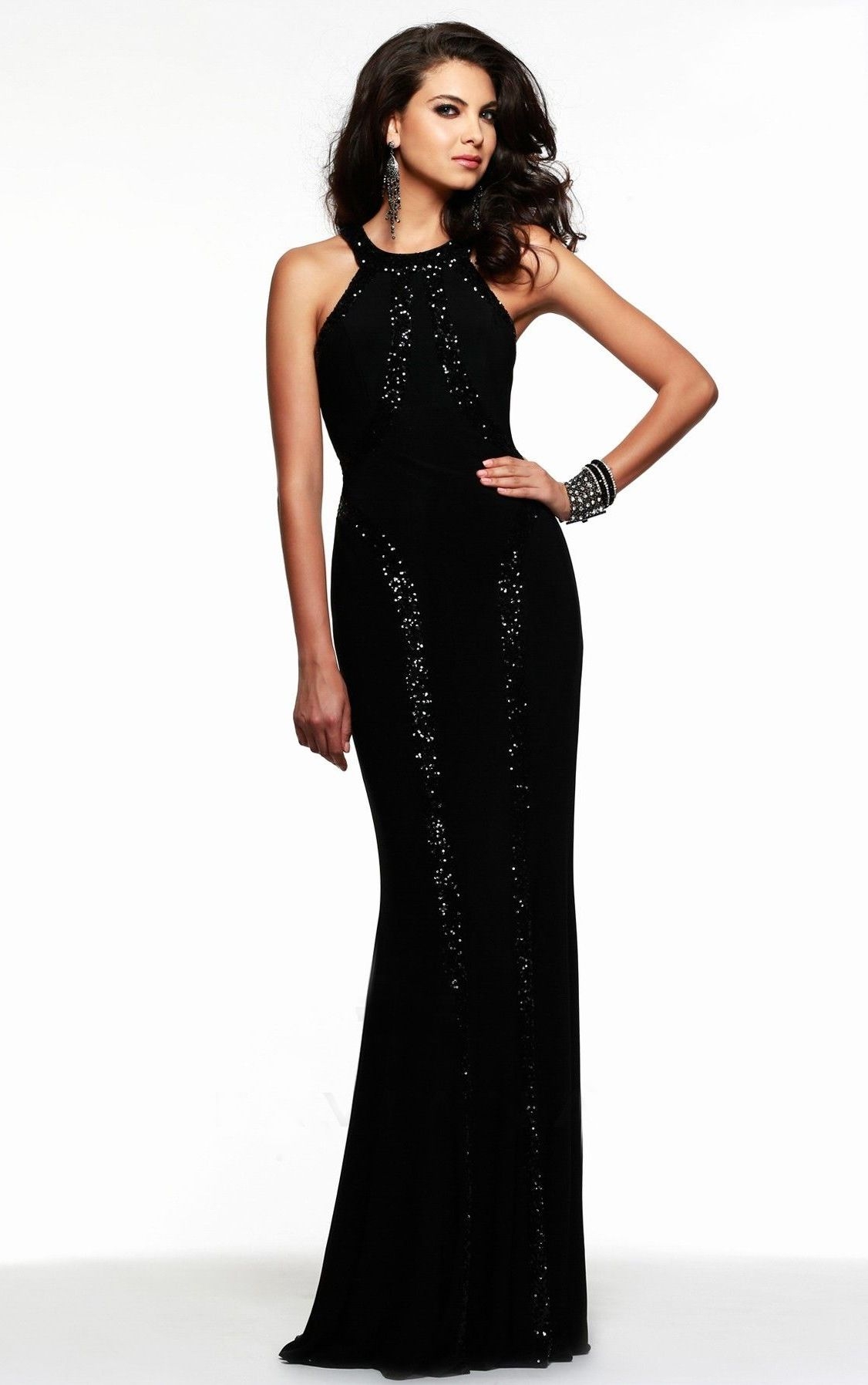 Черное платье с пайетками длинное