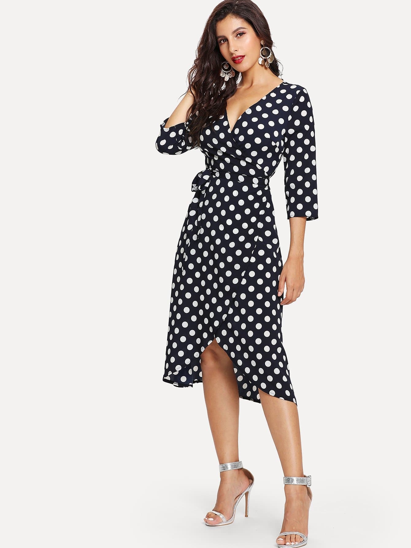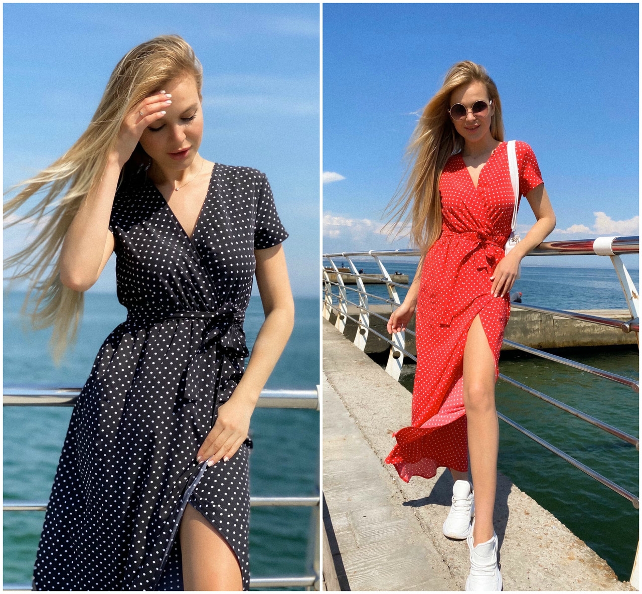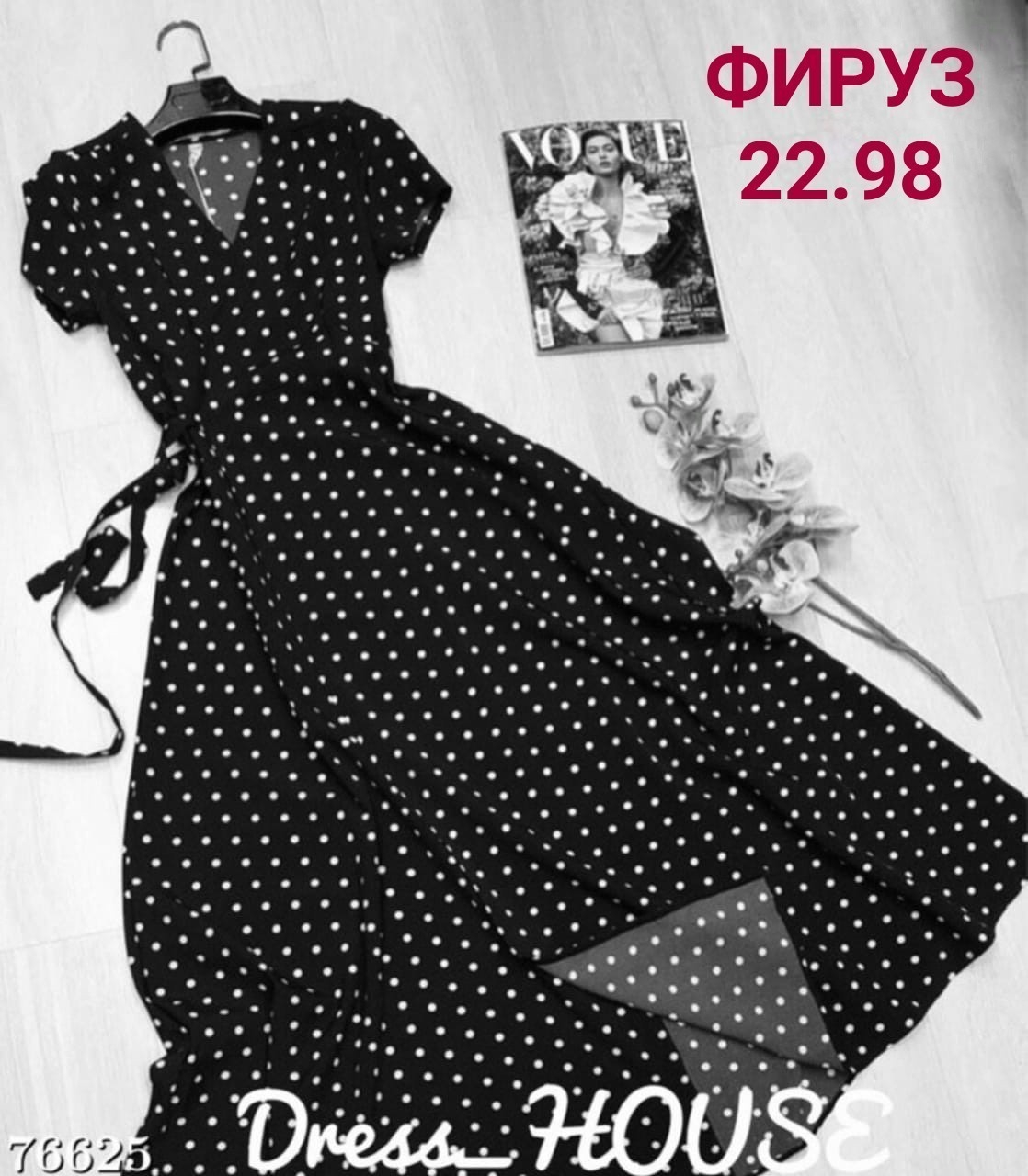 Платье в горох с запахом