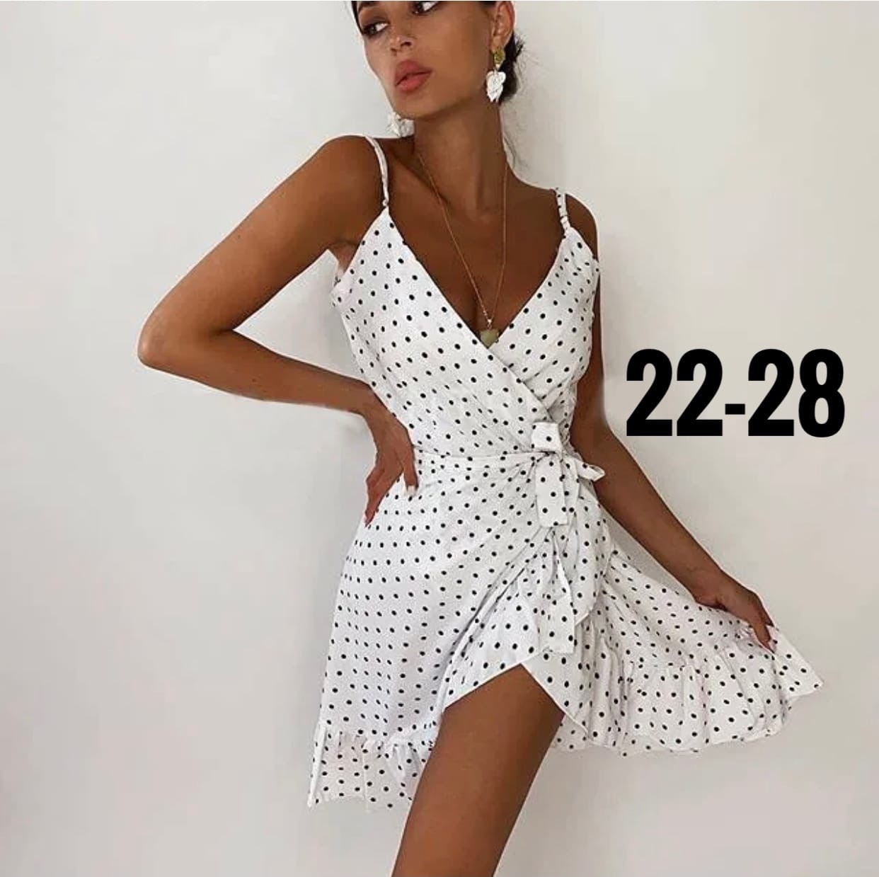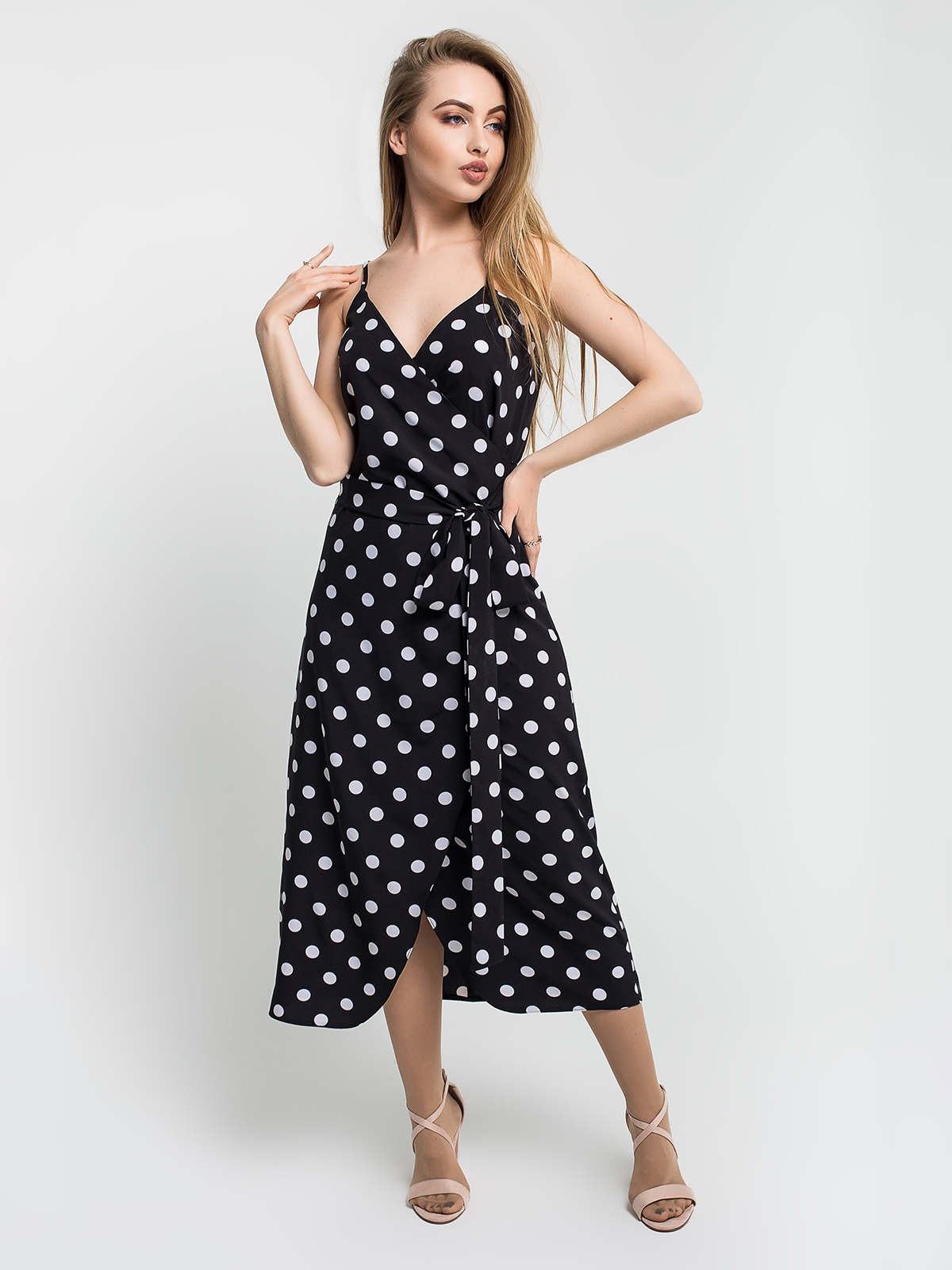 Платье в горошек с запахом на лямках