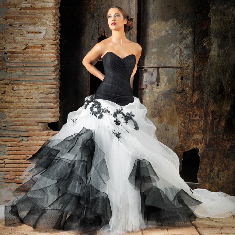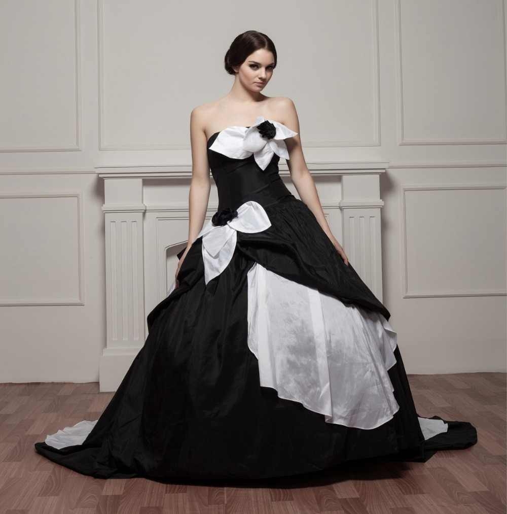 Черно белое свадебное платье
