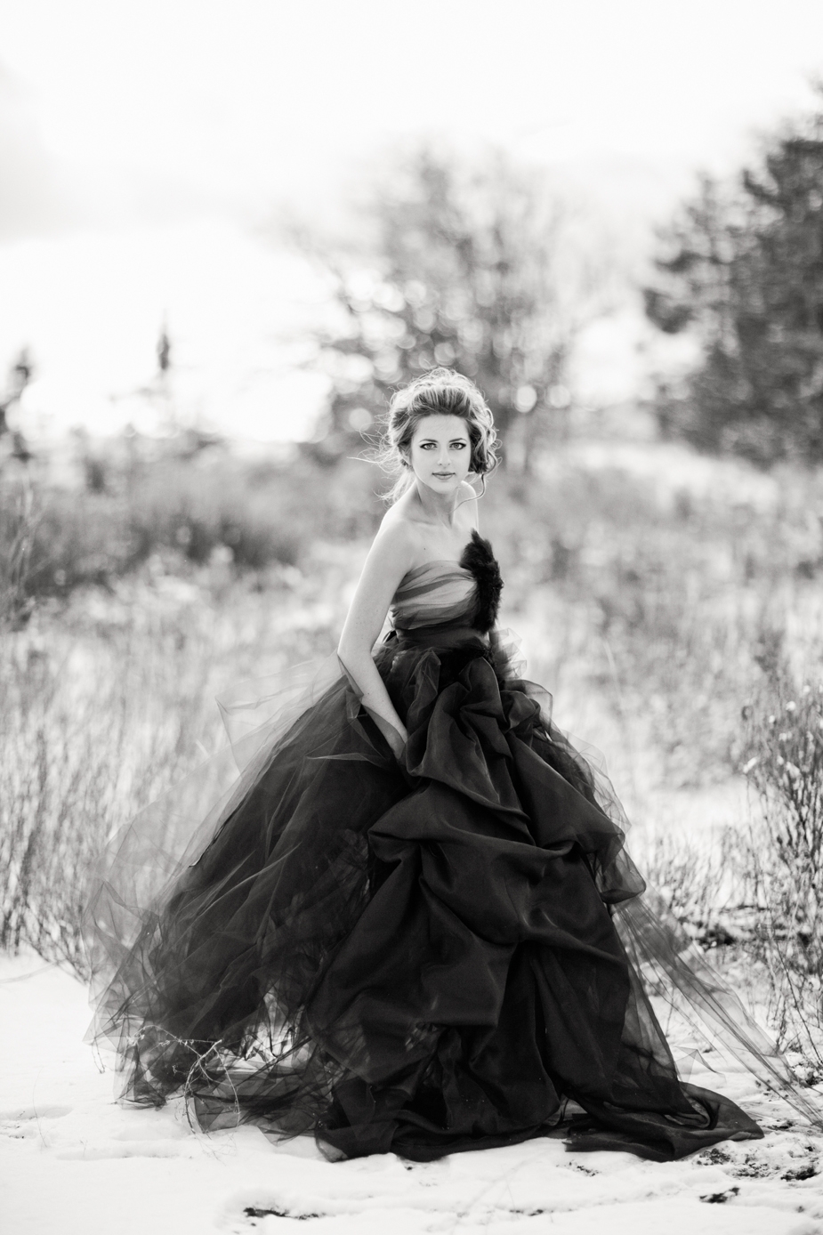 Чёрное свадебное платье зимой