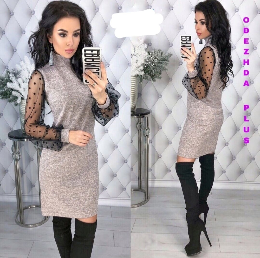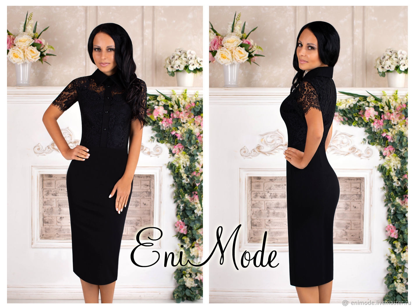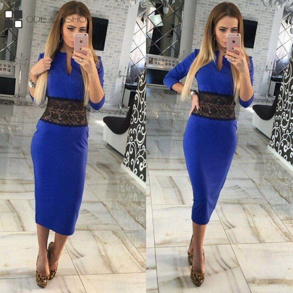 Платье футляр с кружевом из французского трикотажа Lusi № 403.