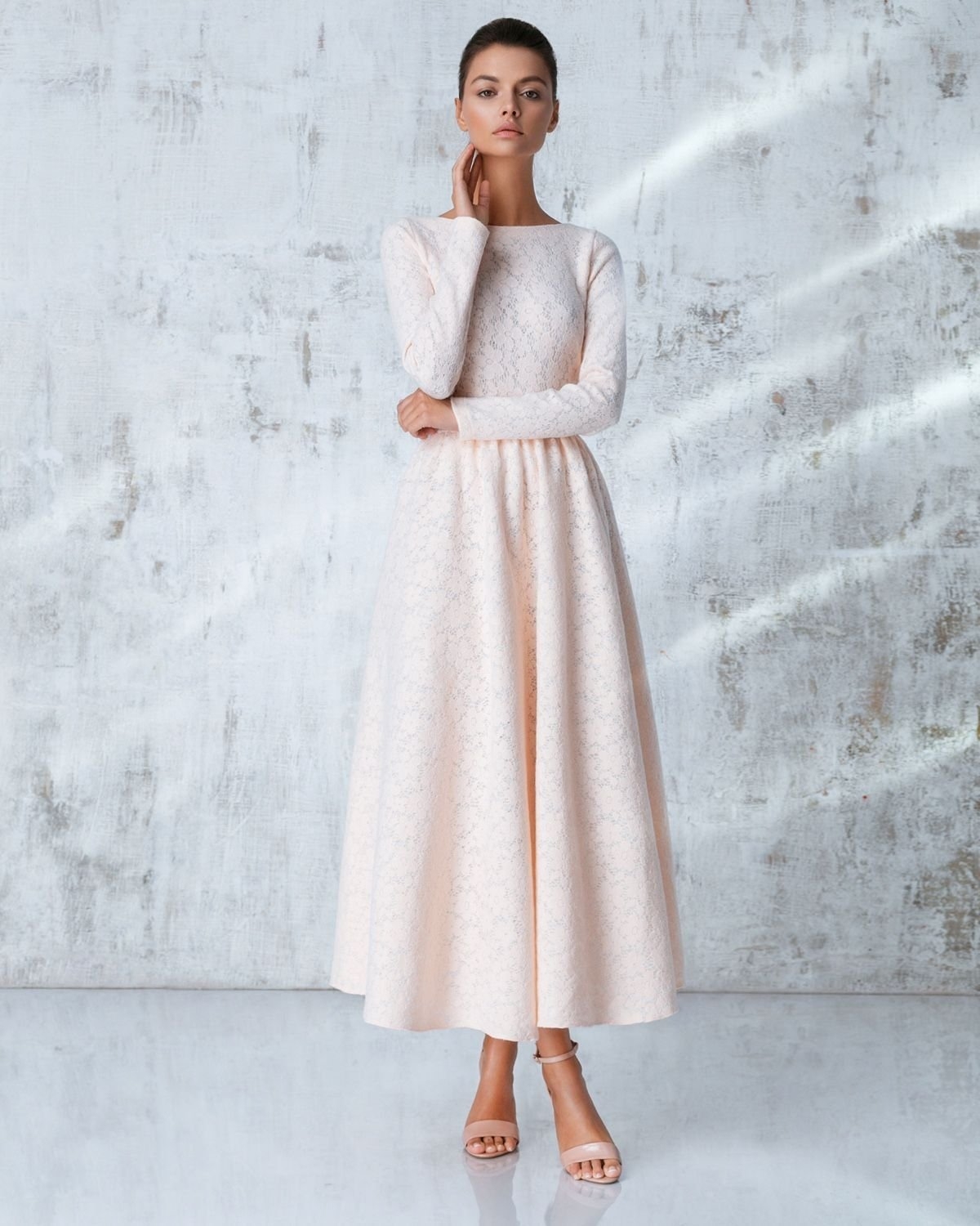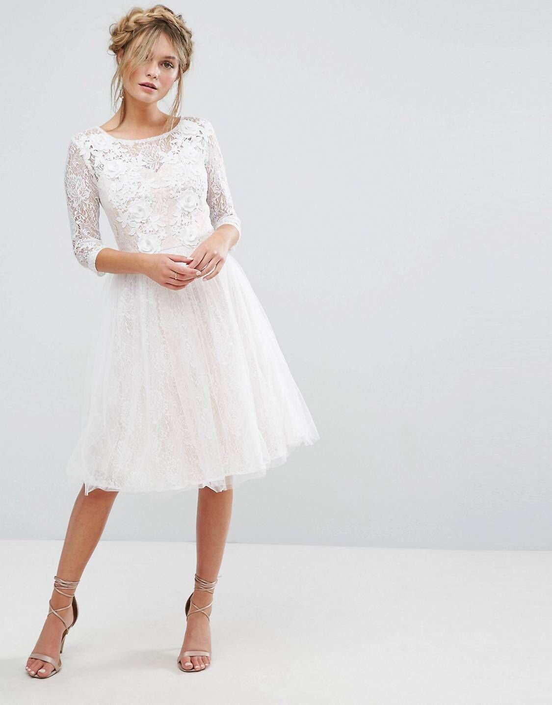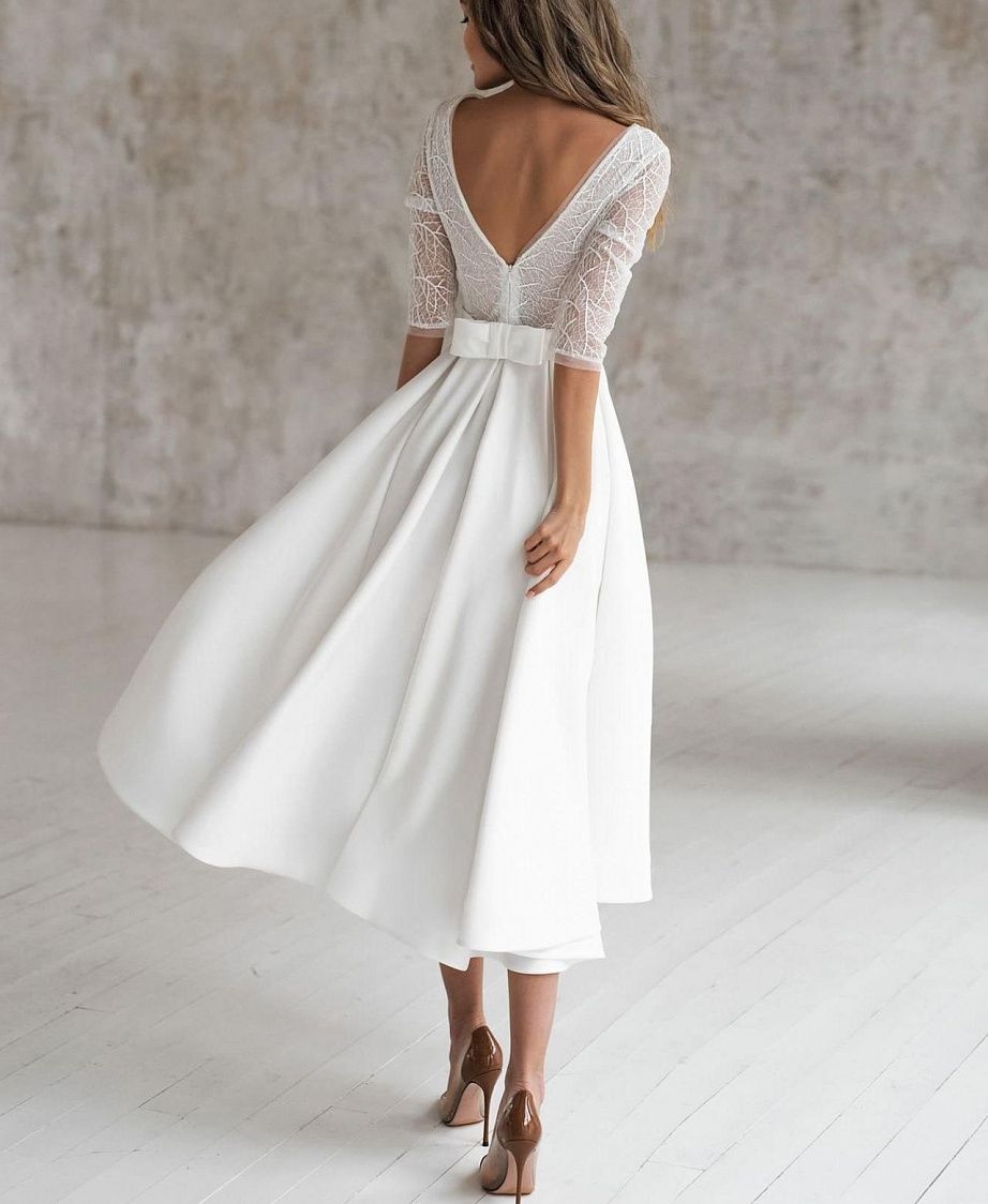 Свадебное платье миди с рукавами