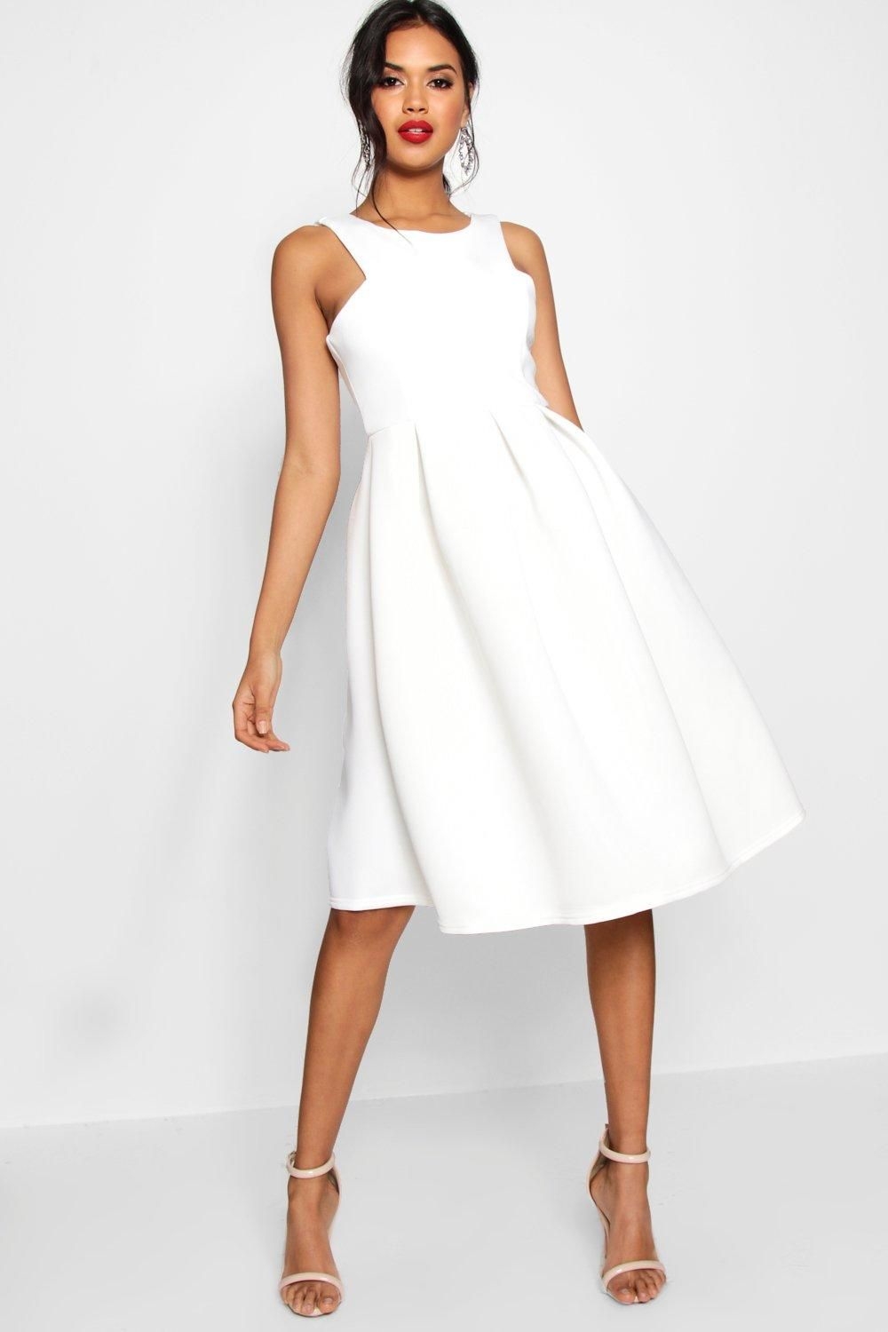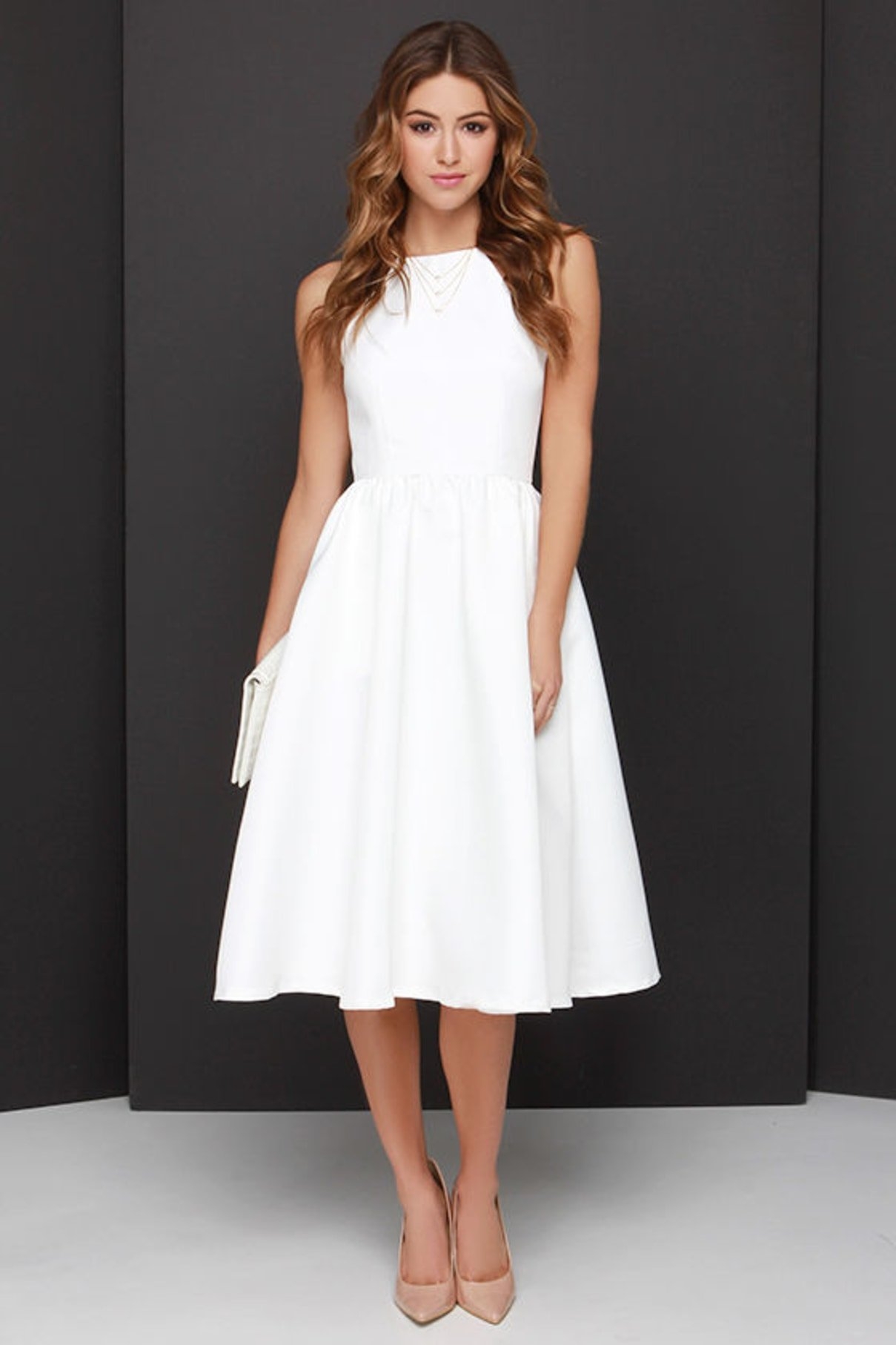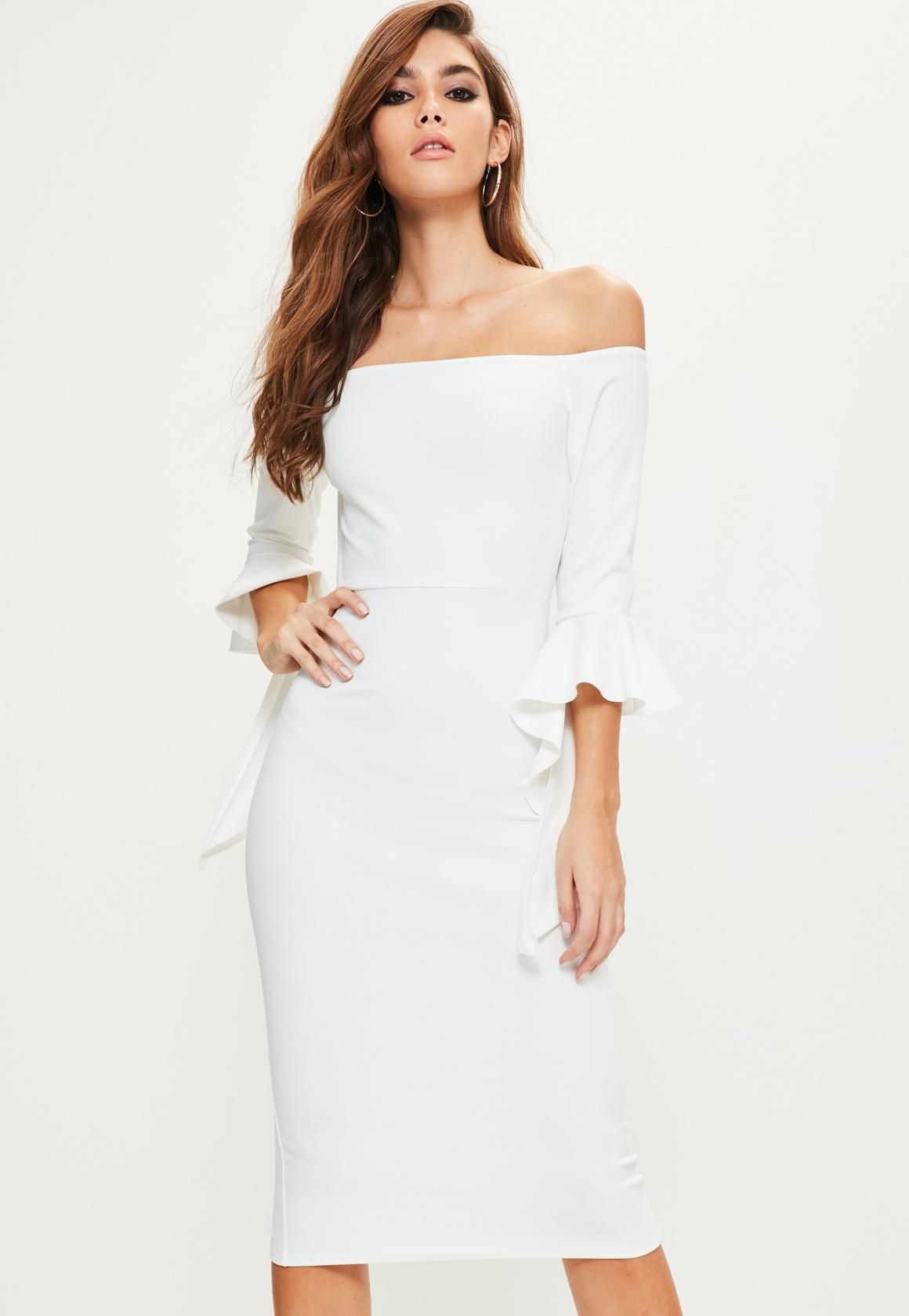 Белое платье миди элегантное