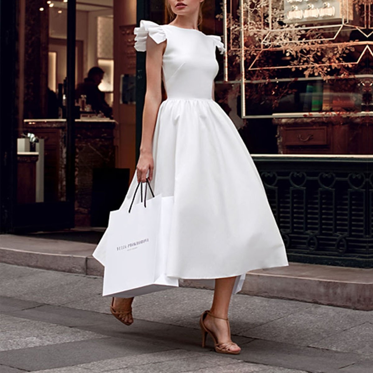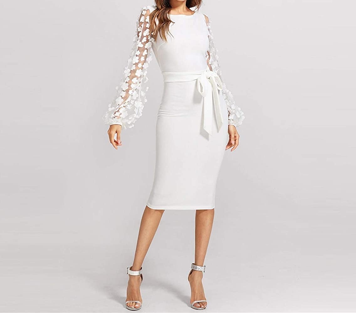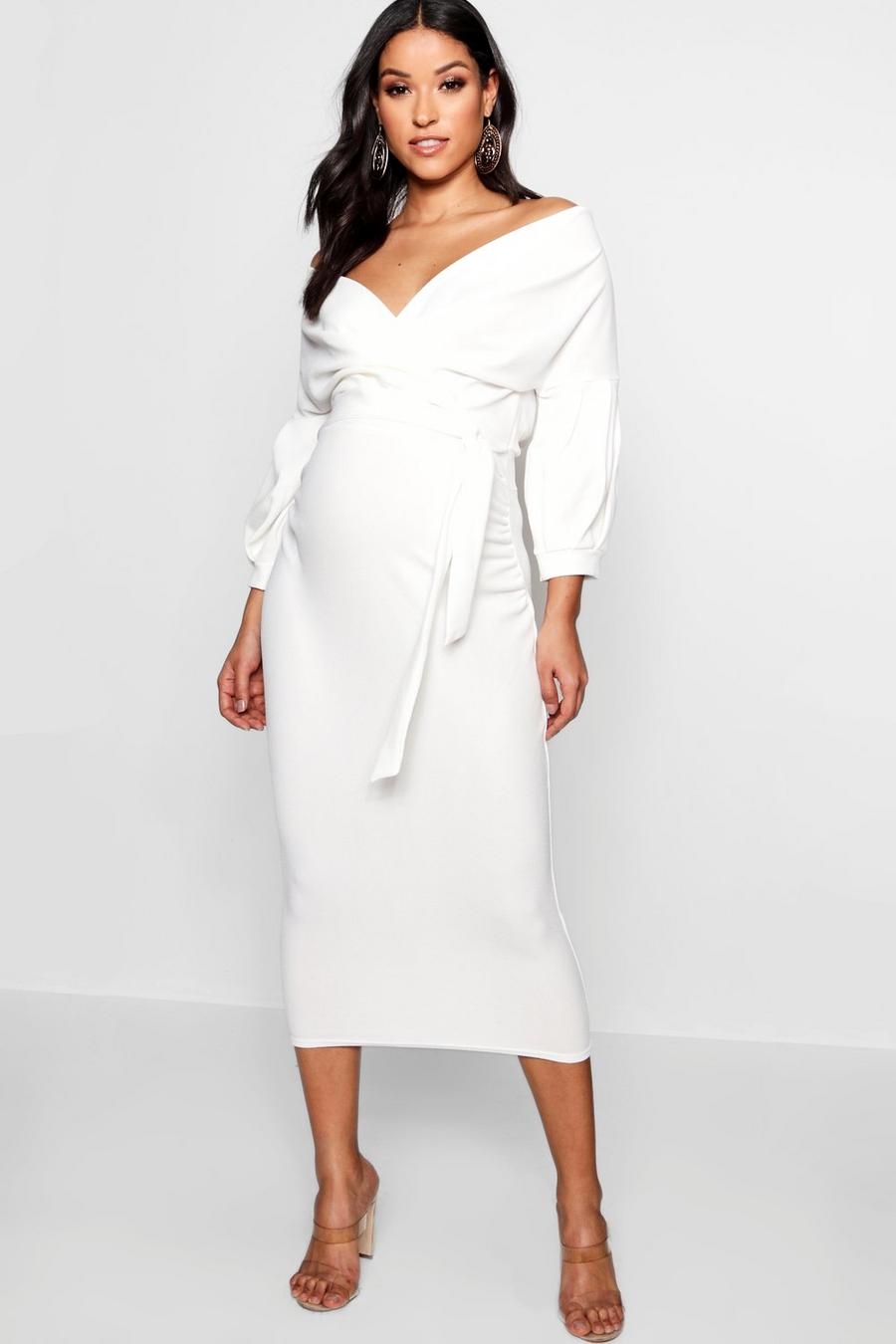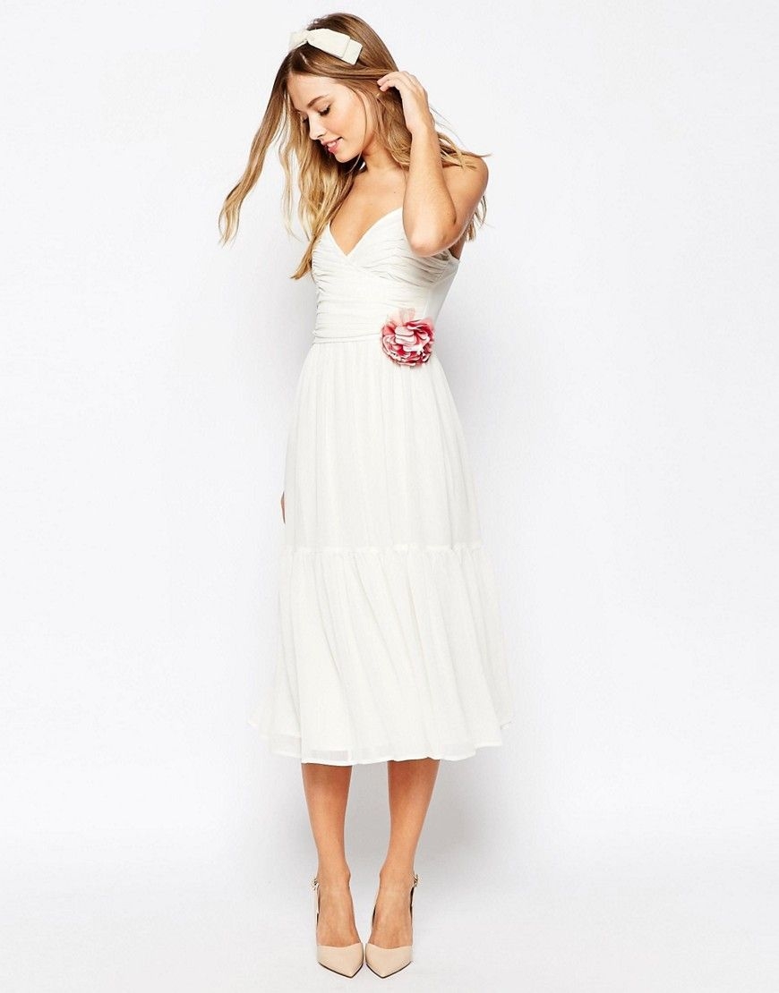 Белое платье миди элегантное