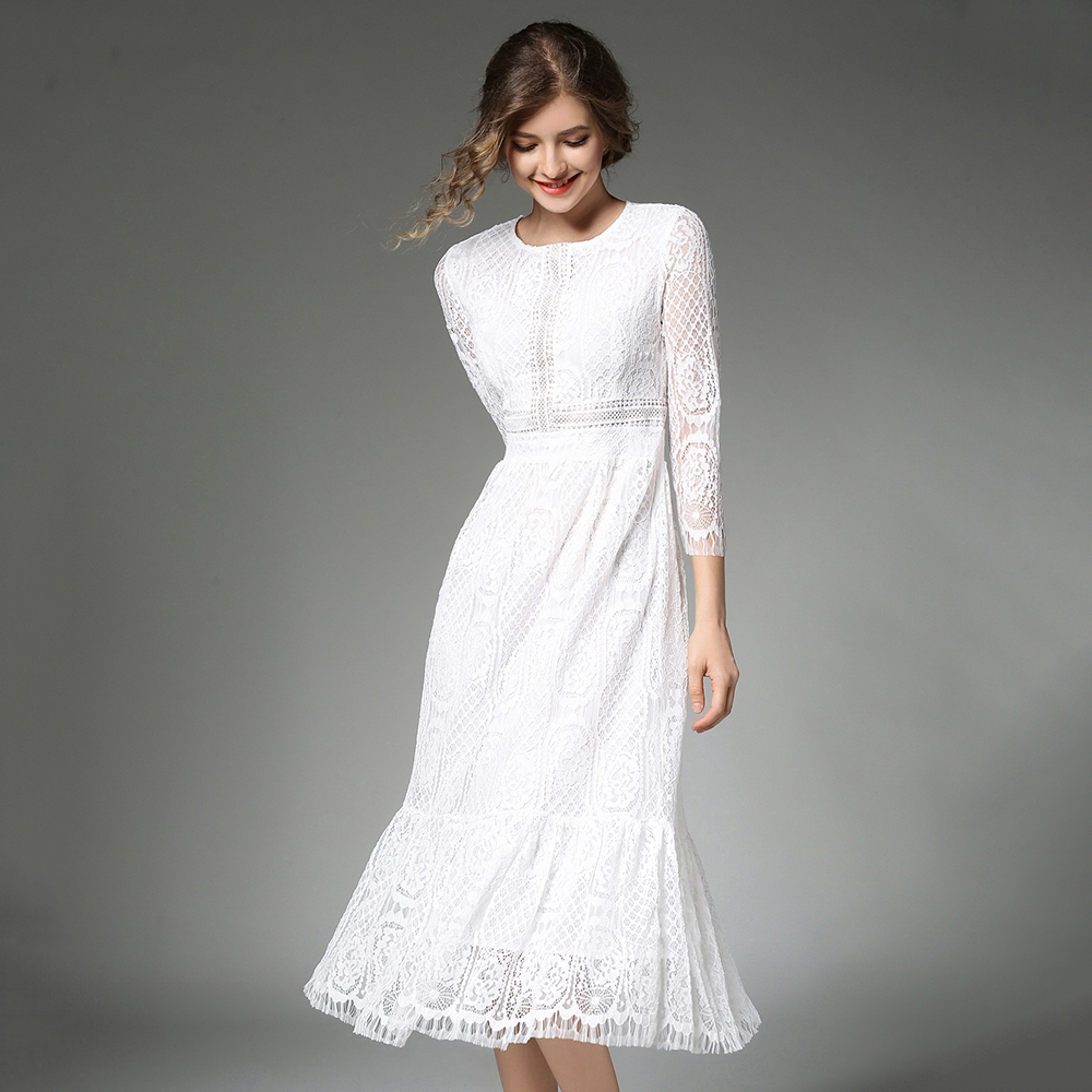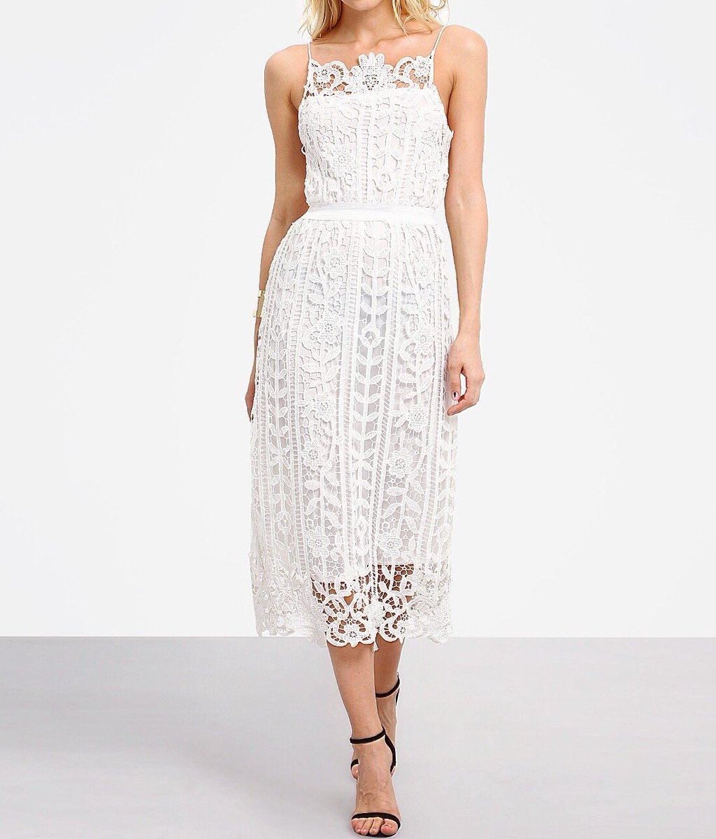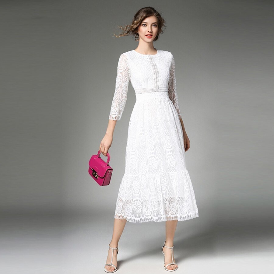 Белое кружевное платье миди