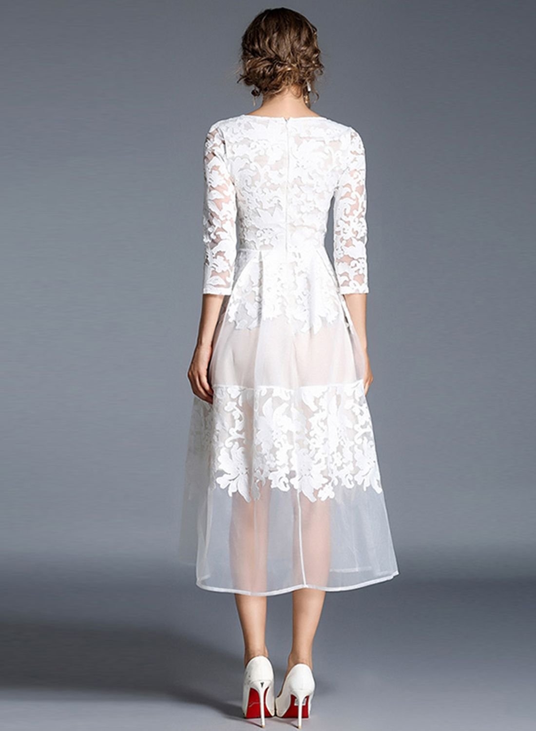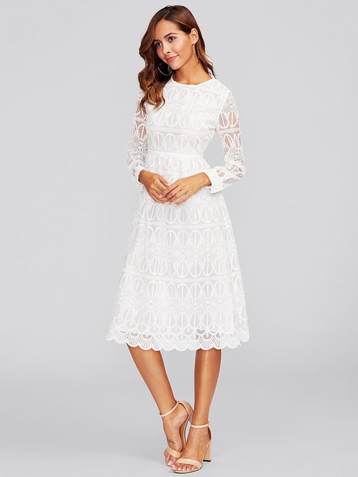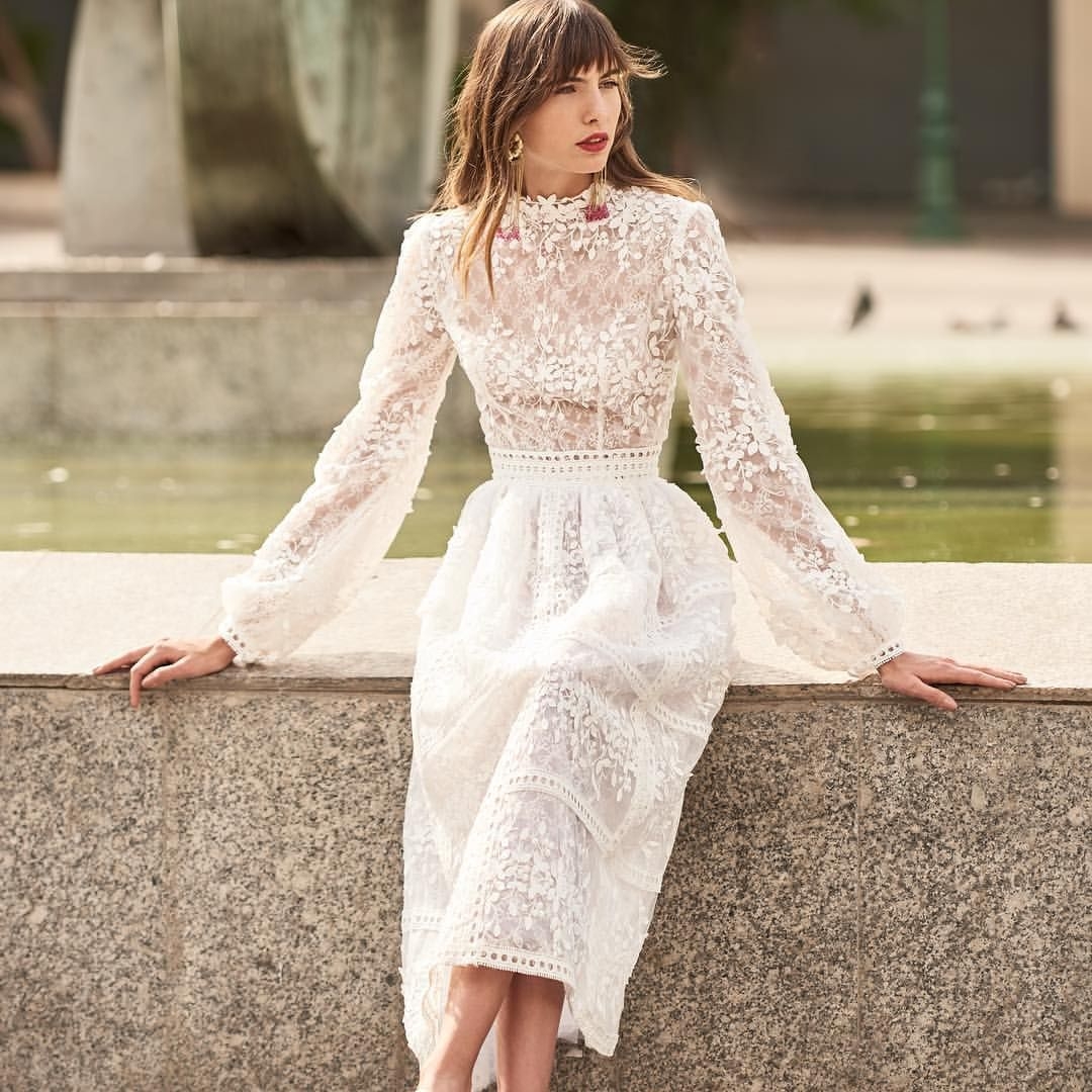 Белое кружевное платье миди