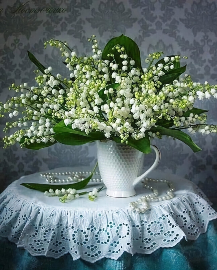 Букет из ландышей с жемчугами