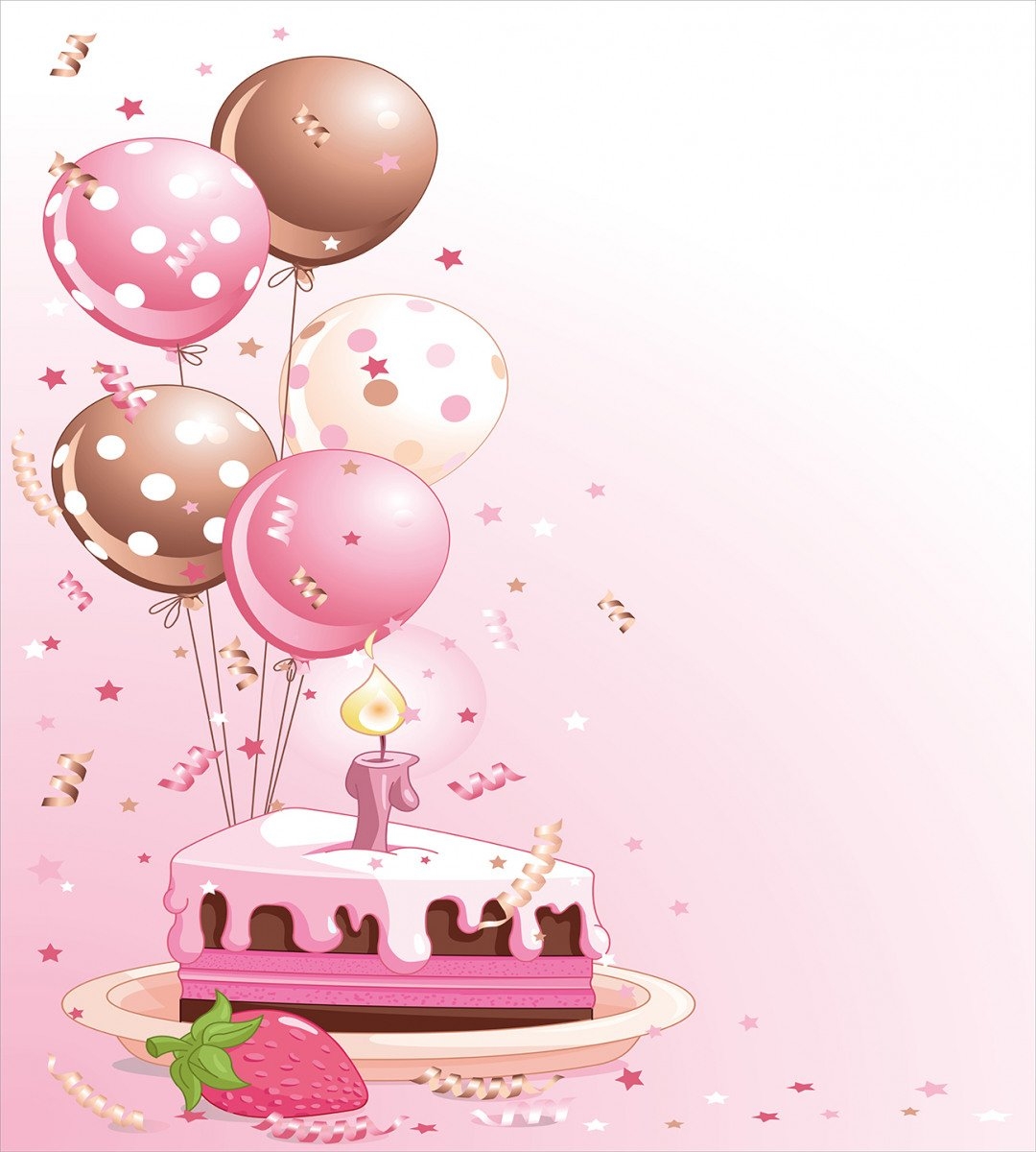 Открытка с шариками и тортом